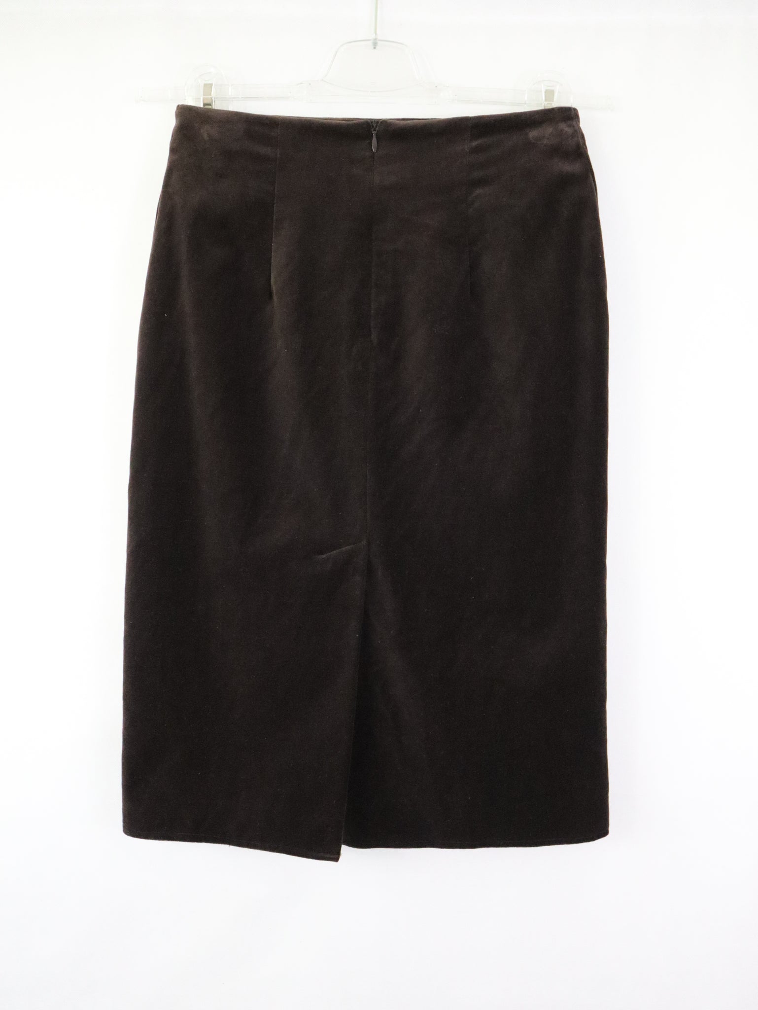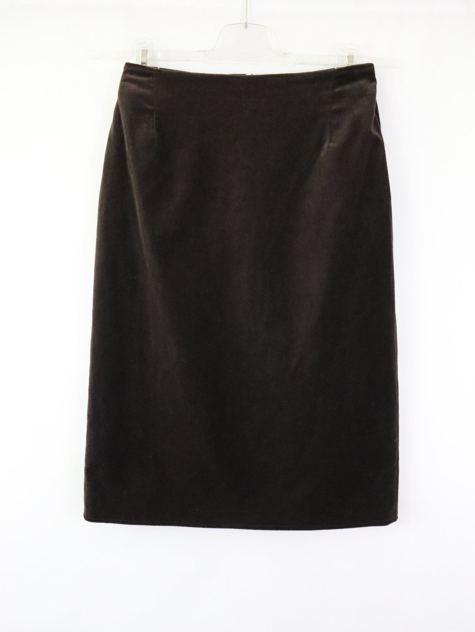 Andiatan Suomessa valmistettu ruskea puolihame sileää puuvillasamettia