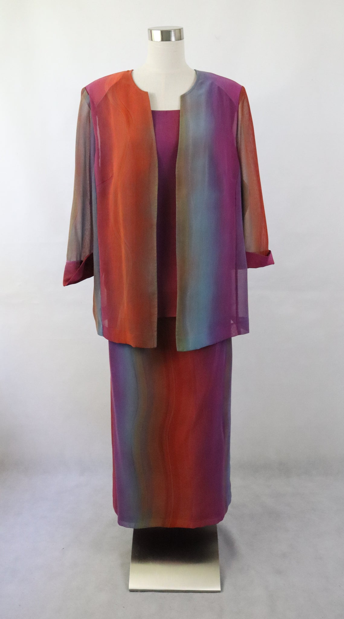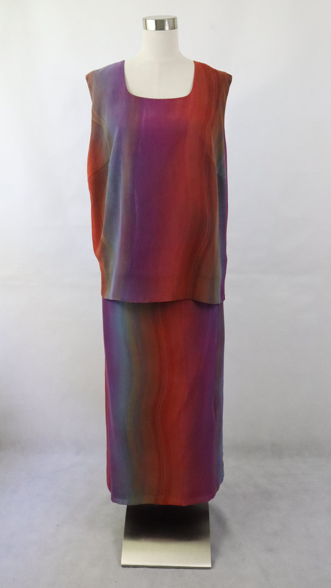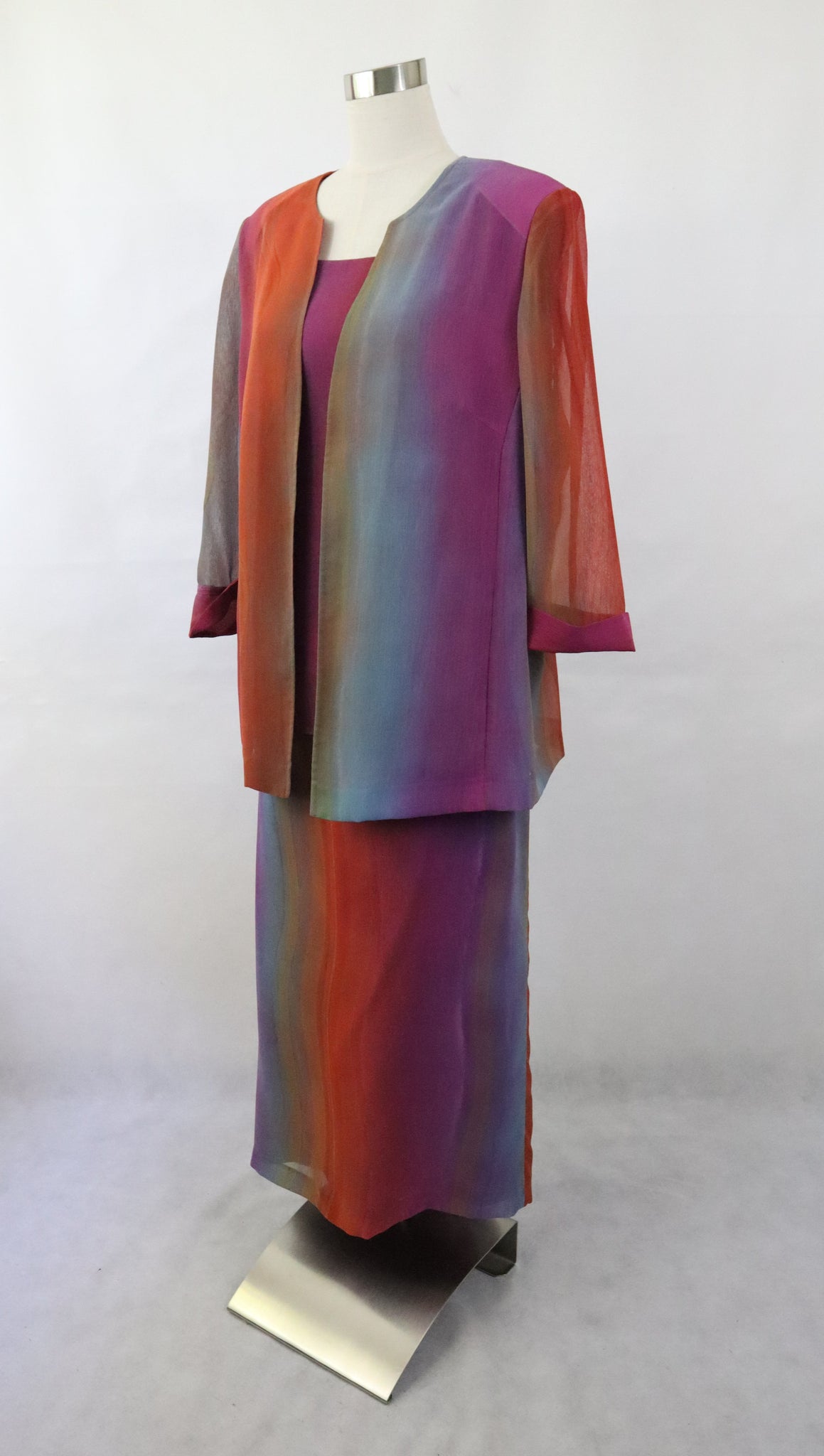 Suomessa valmistettu näyttävä, värikäs asukokonaisuus