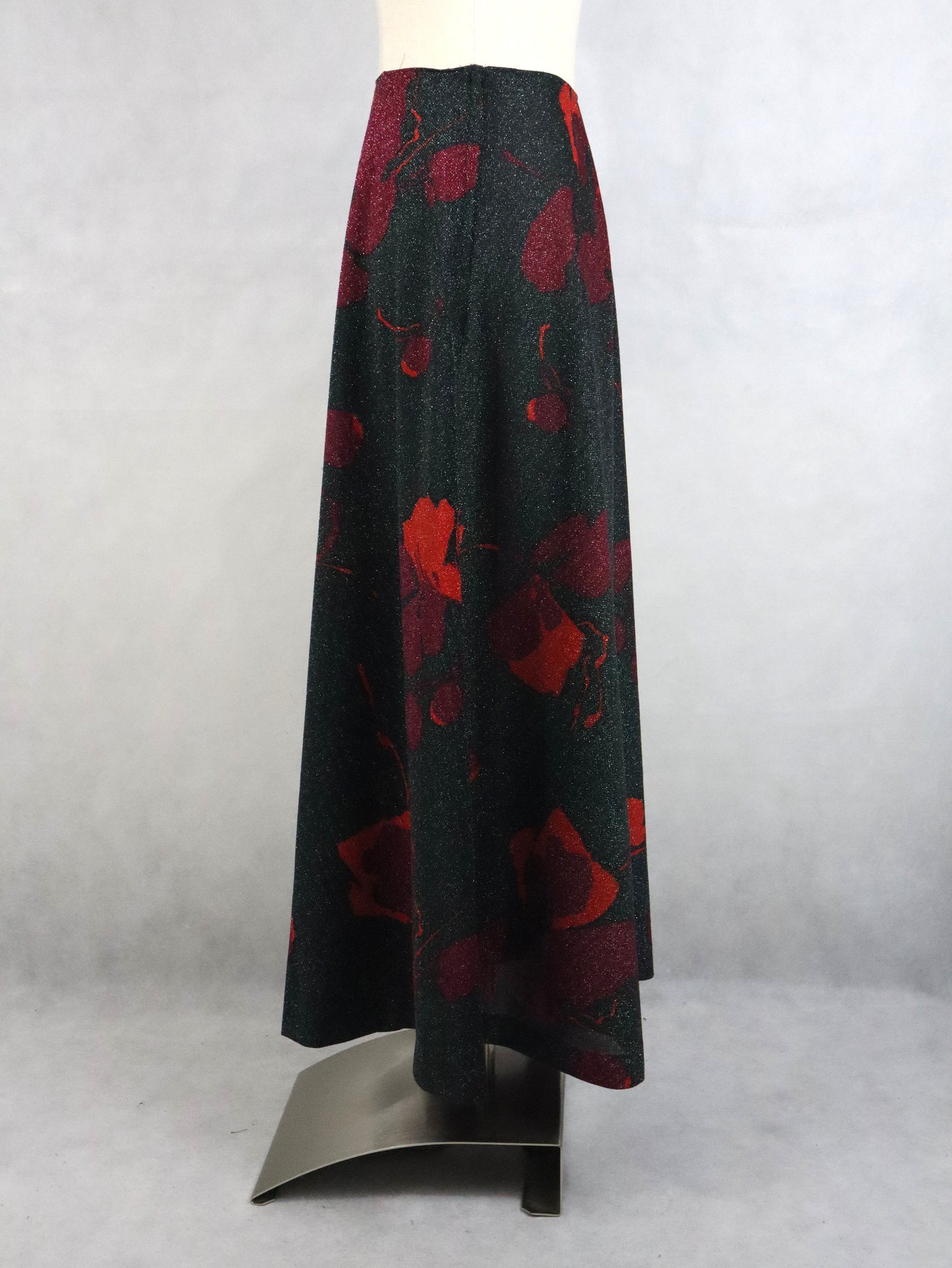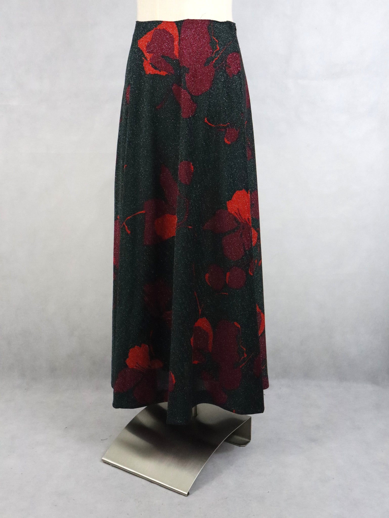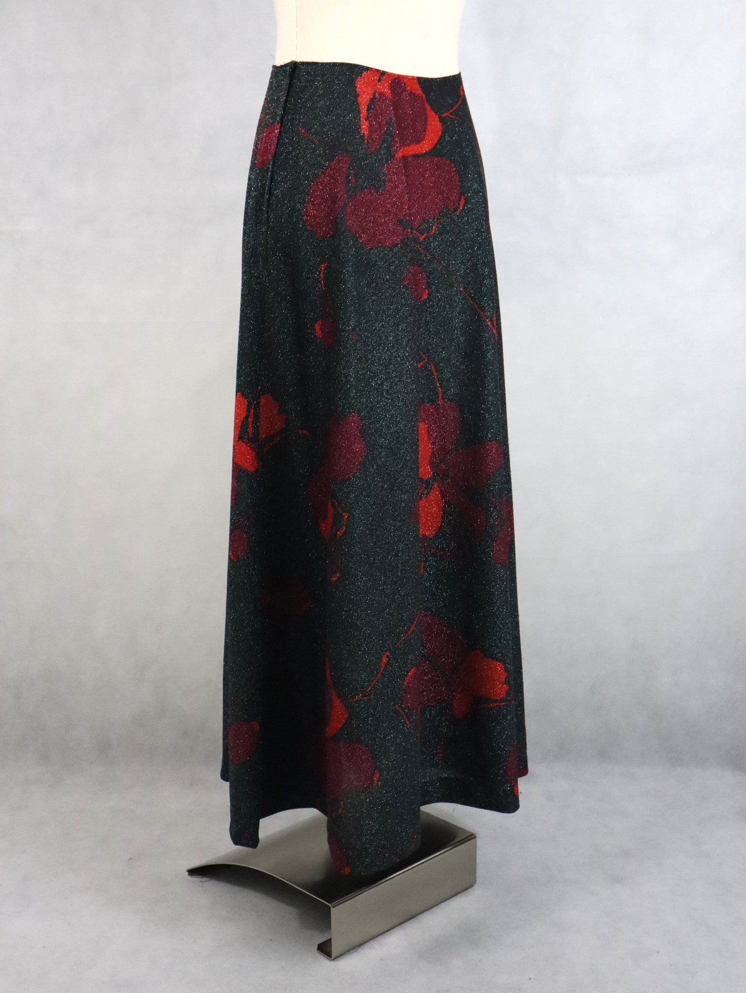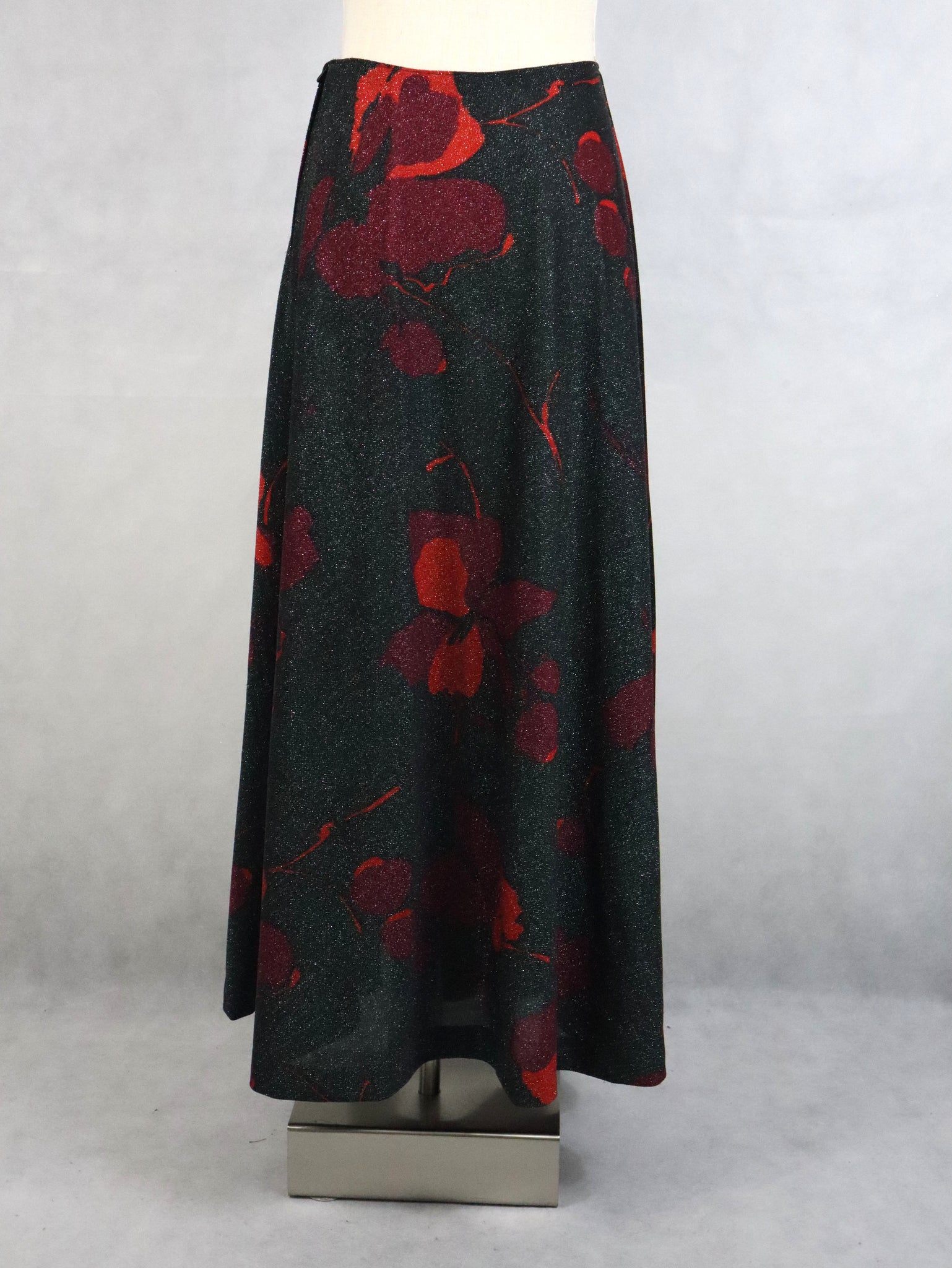 Leona made in Finland kimalteleva musta punakuvioinen vintage maksihame C38
