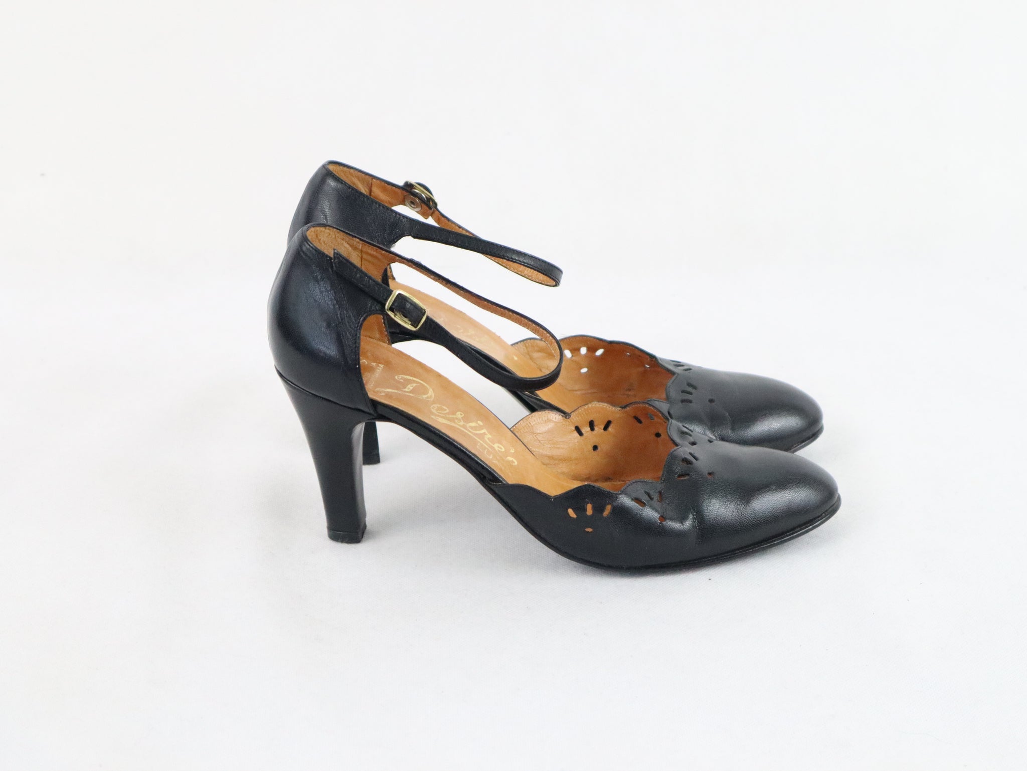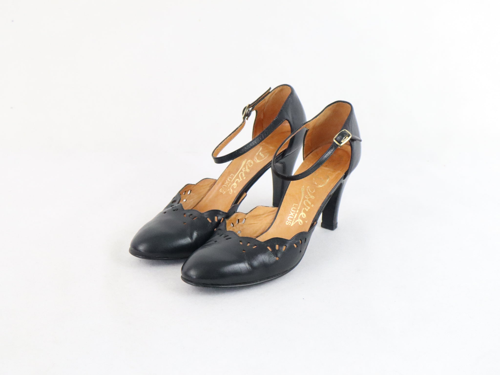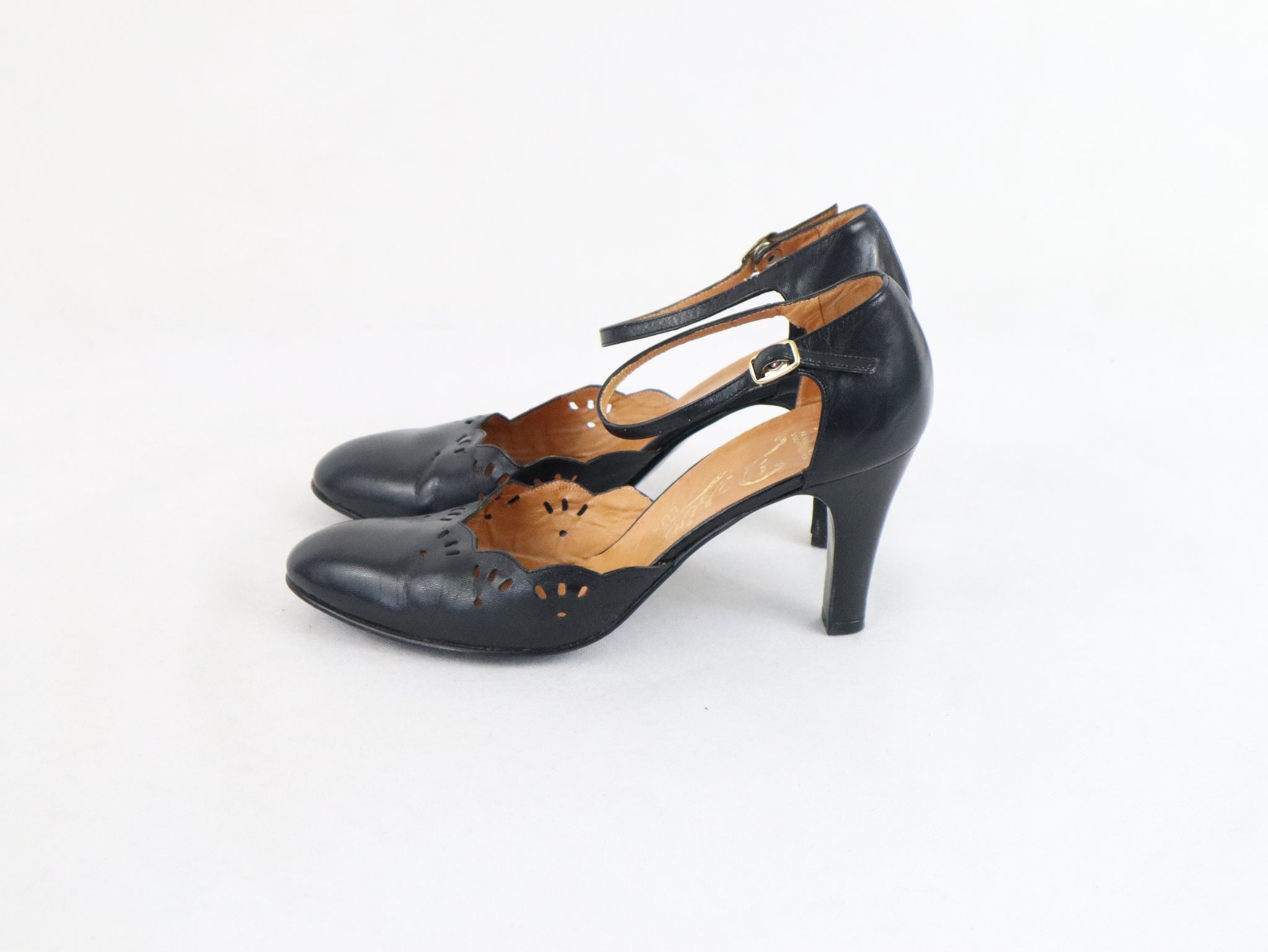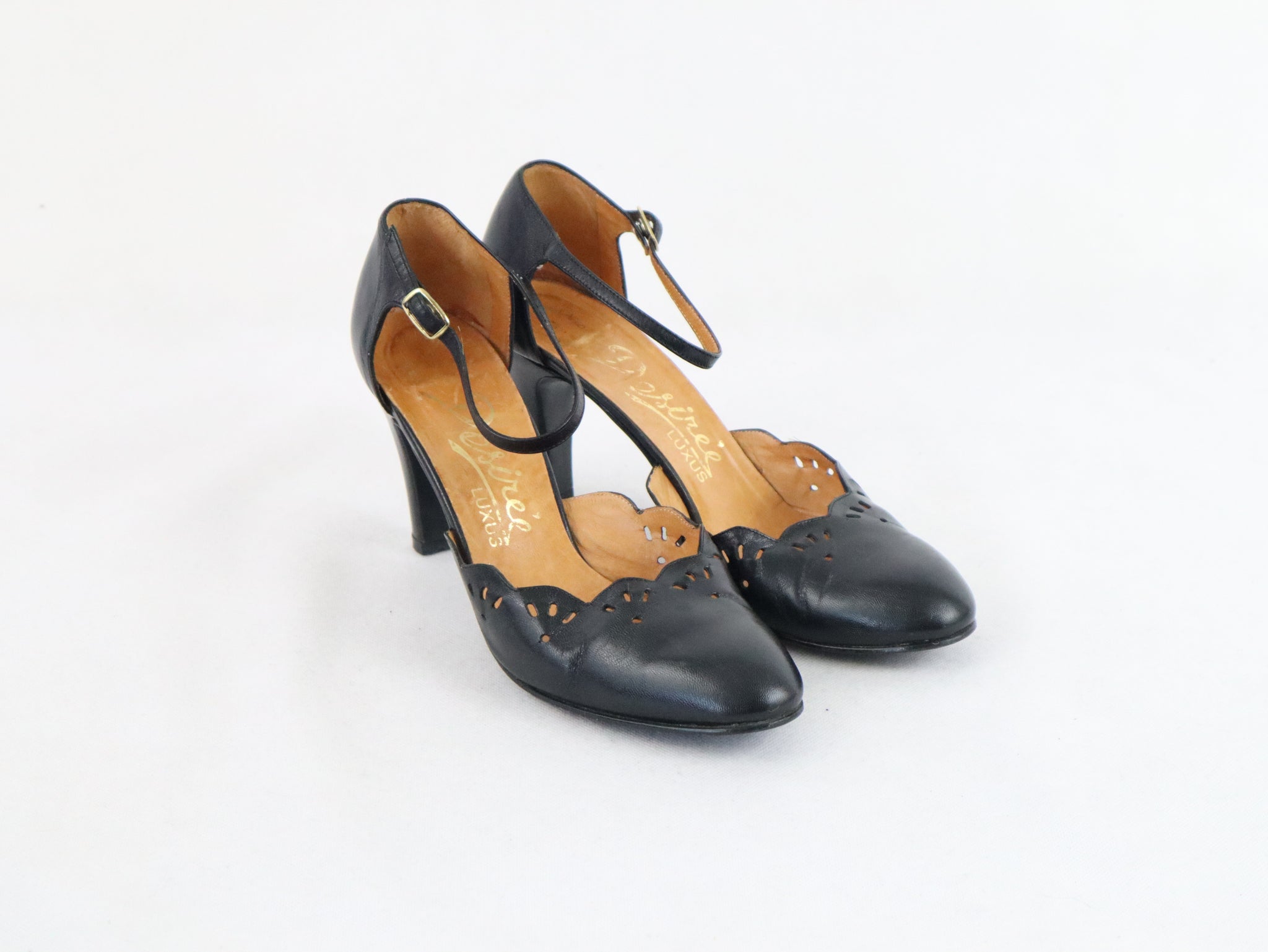 Mustat nahkaiset korkokengät, valmistaja Desirée Luxus, made in Finland. Kengät ovat kotimaista vintagea arviolta 70-80-luvulta, voivat olla sitä vanhemmatkin.