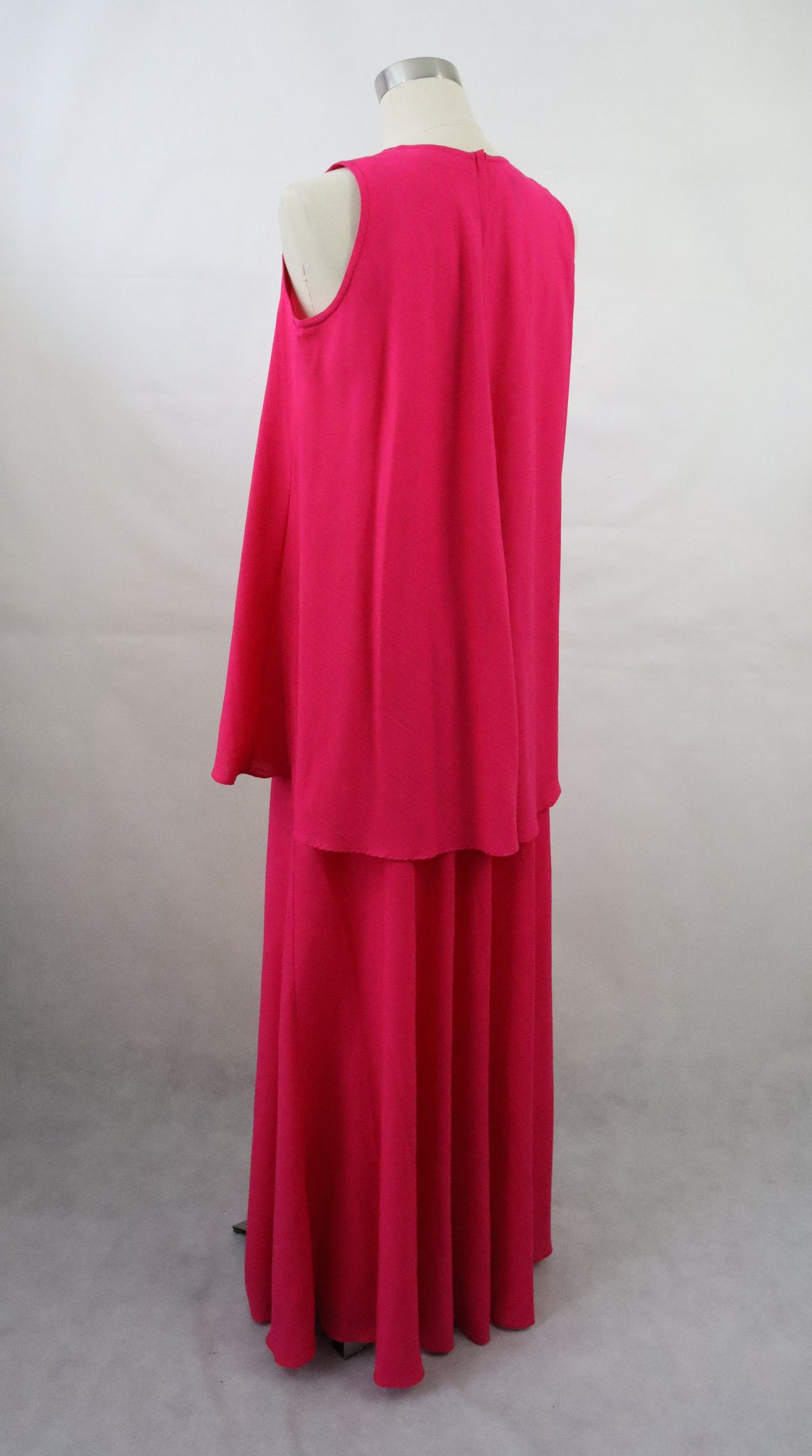Fuksianpunainen kaksiosainen asukokonaisuus kotimaista vintagea 80-luvulta, valmistaja Vuokko Suomi Finland.