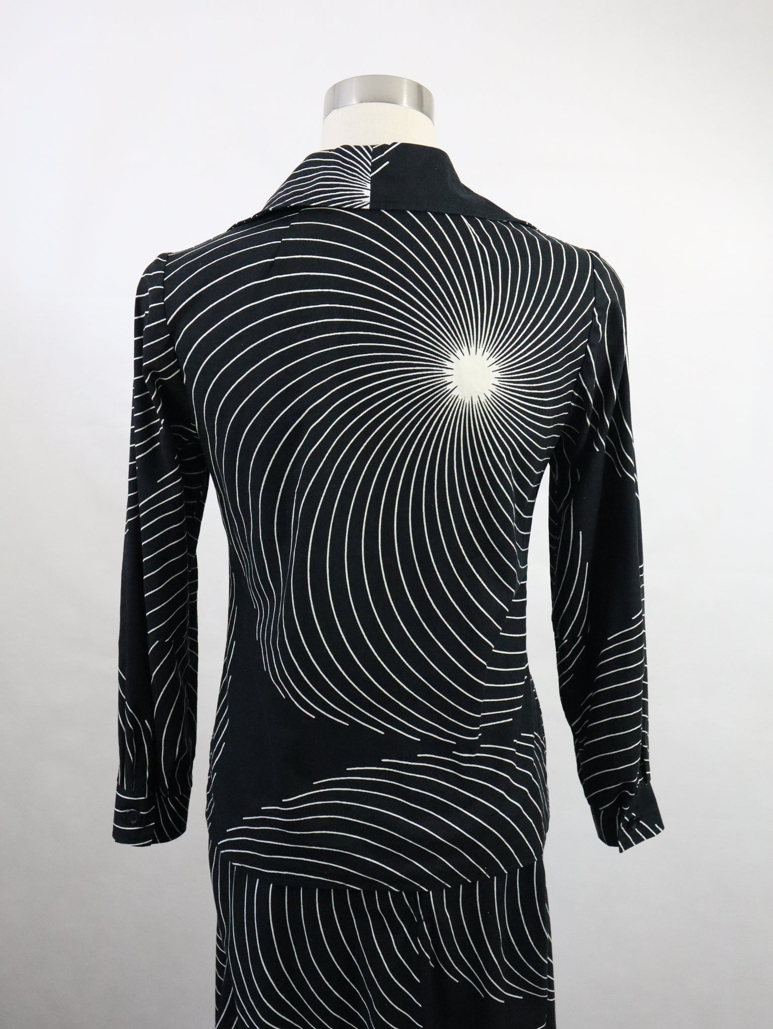 Mustavalkoinen kuviollinen hame ja pusero 38