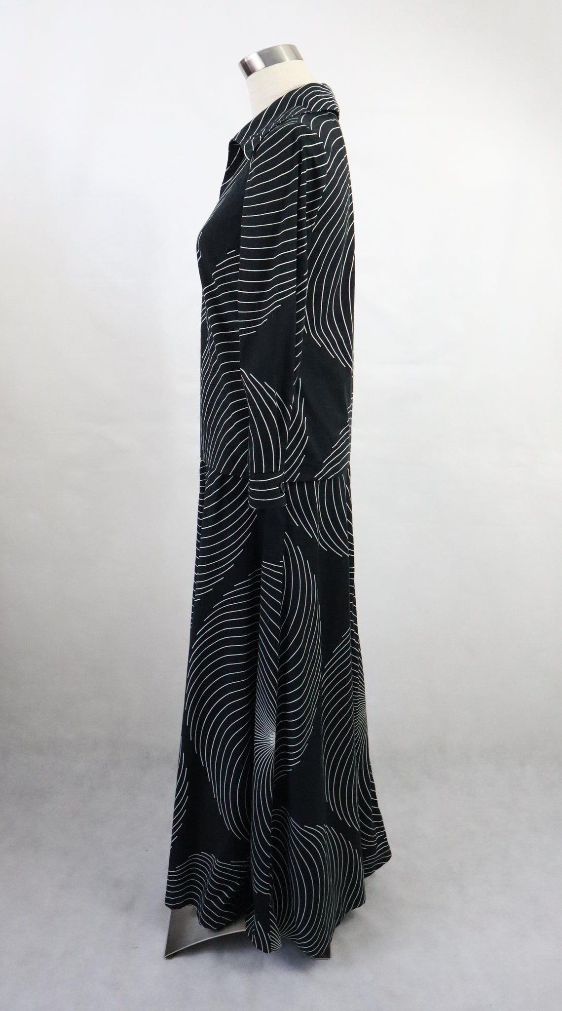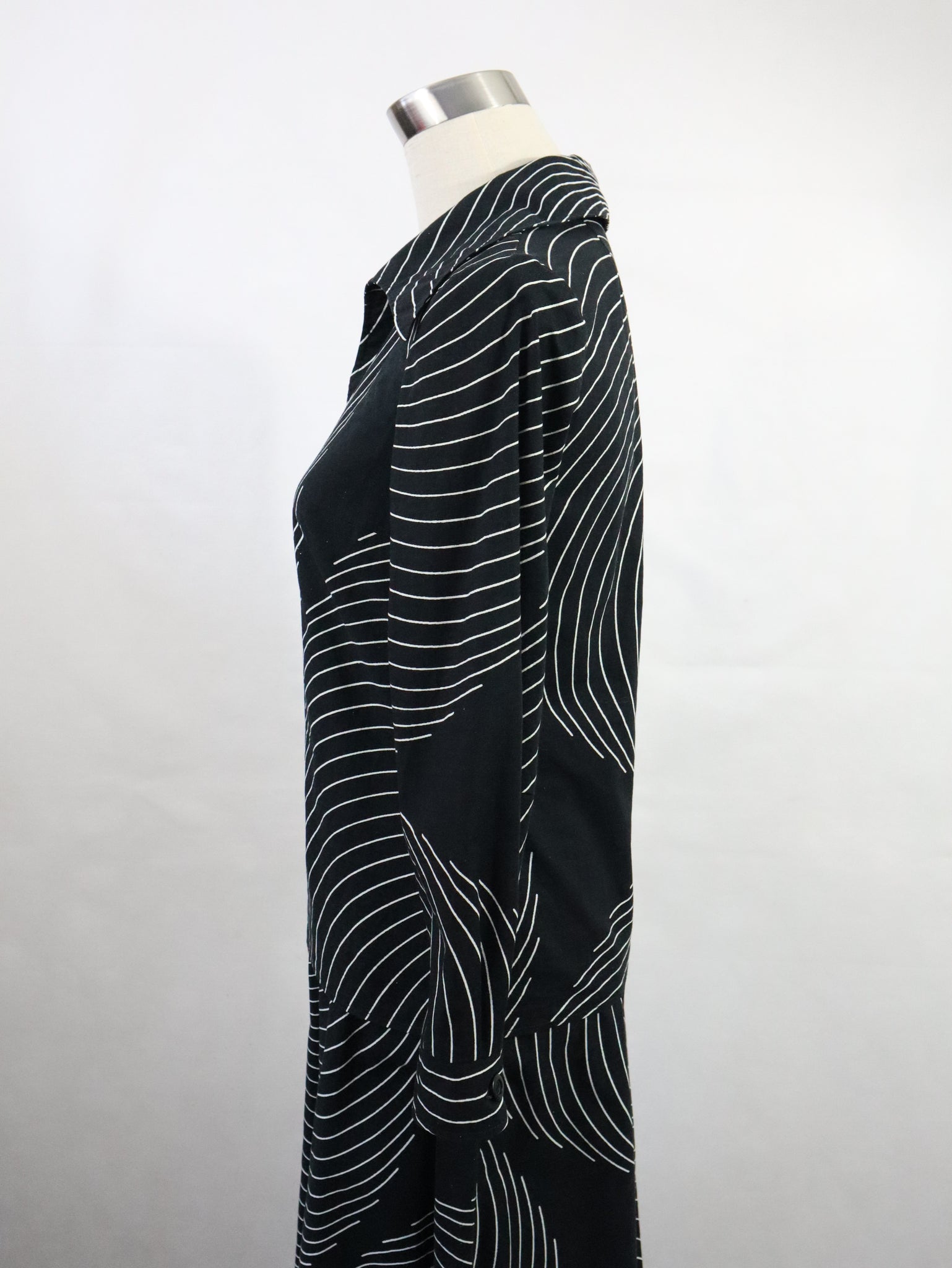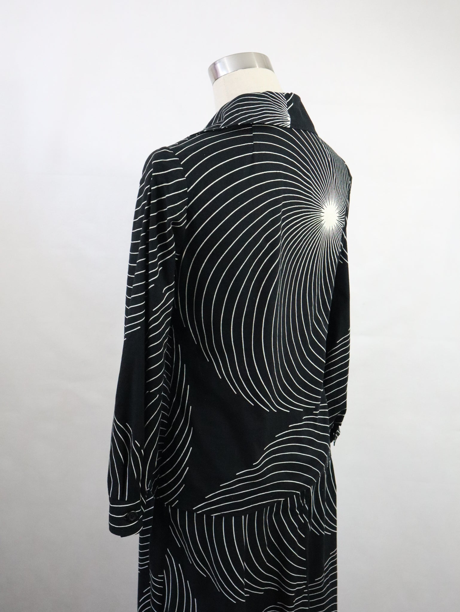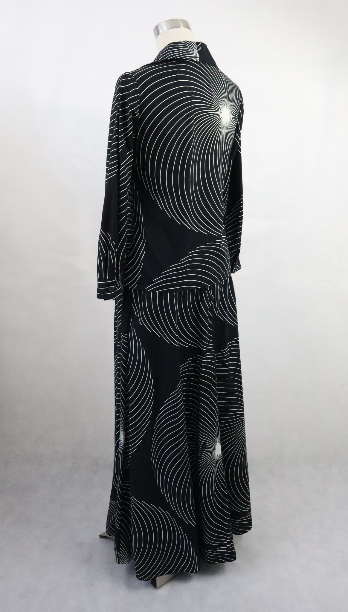 Mustavalkoinen pusero ja maksihame -yhdistelmä 70-luvun kotimaista vintagea, valmistaja Fenno-Sport, made in Finland.