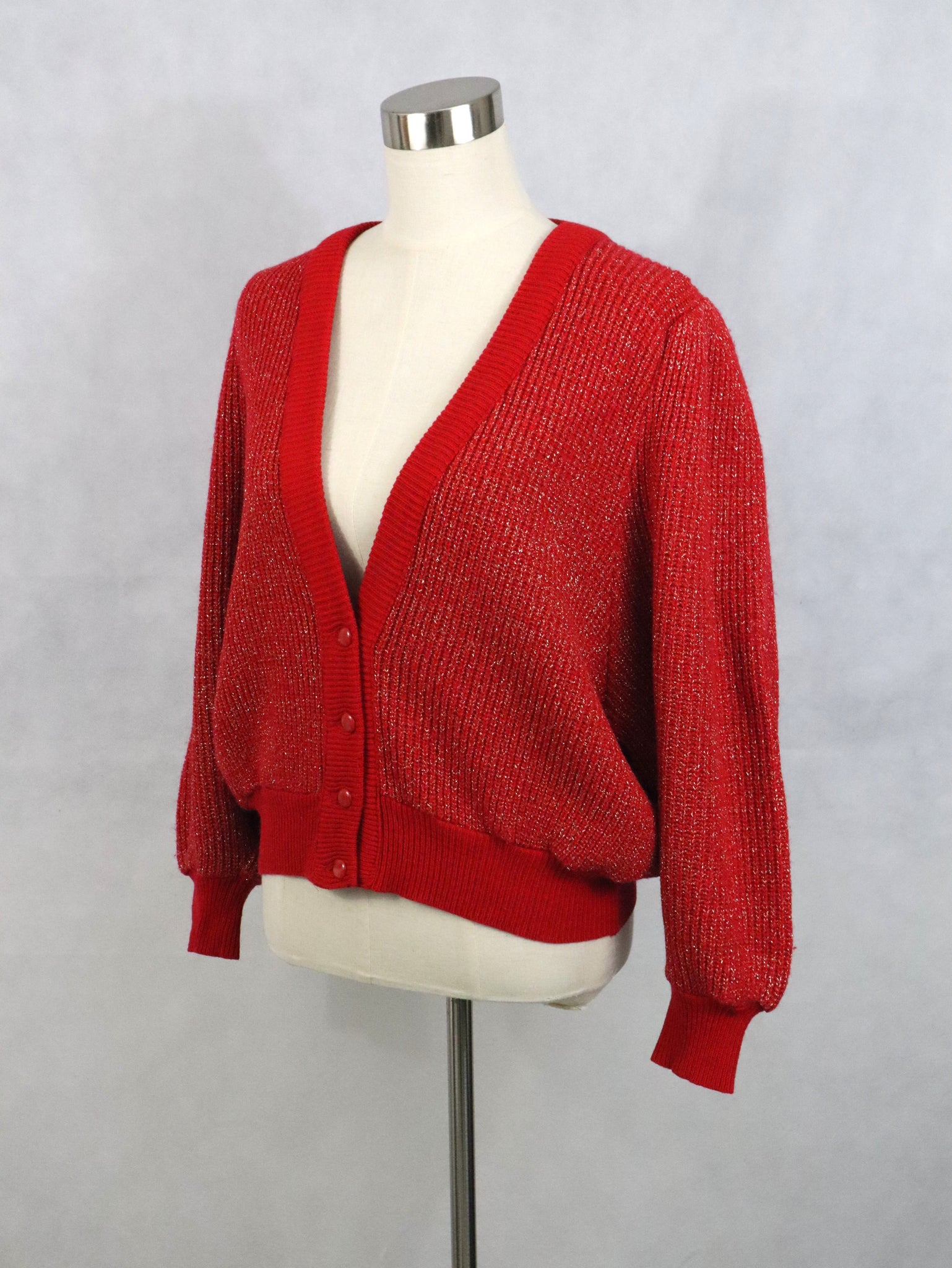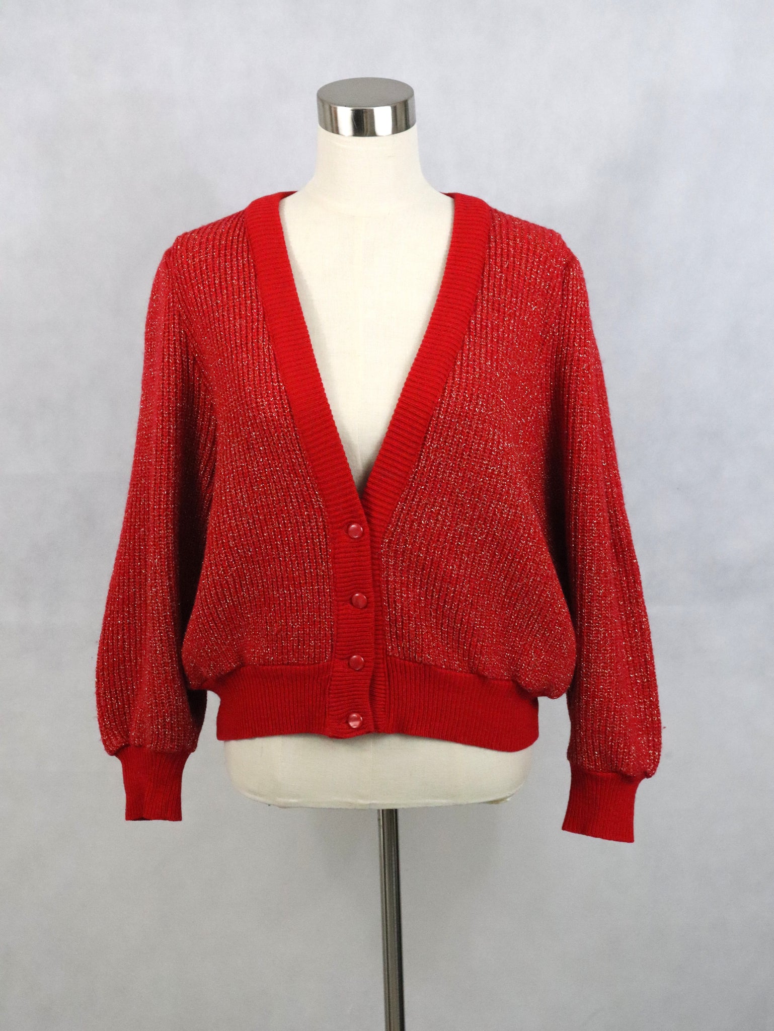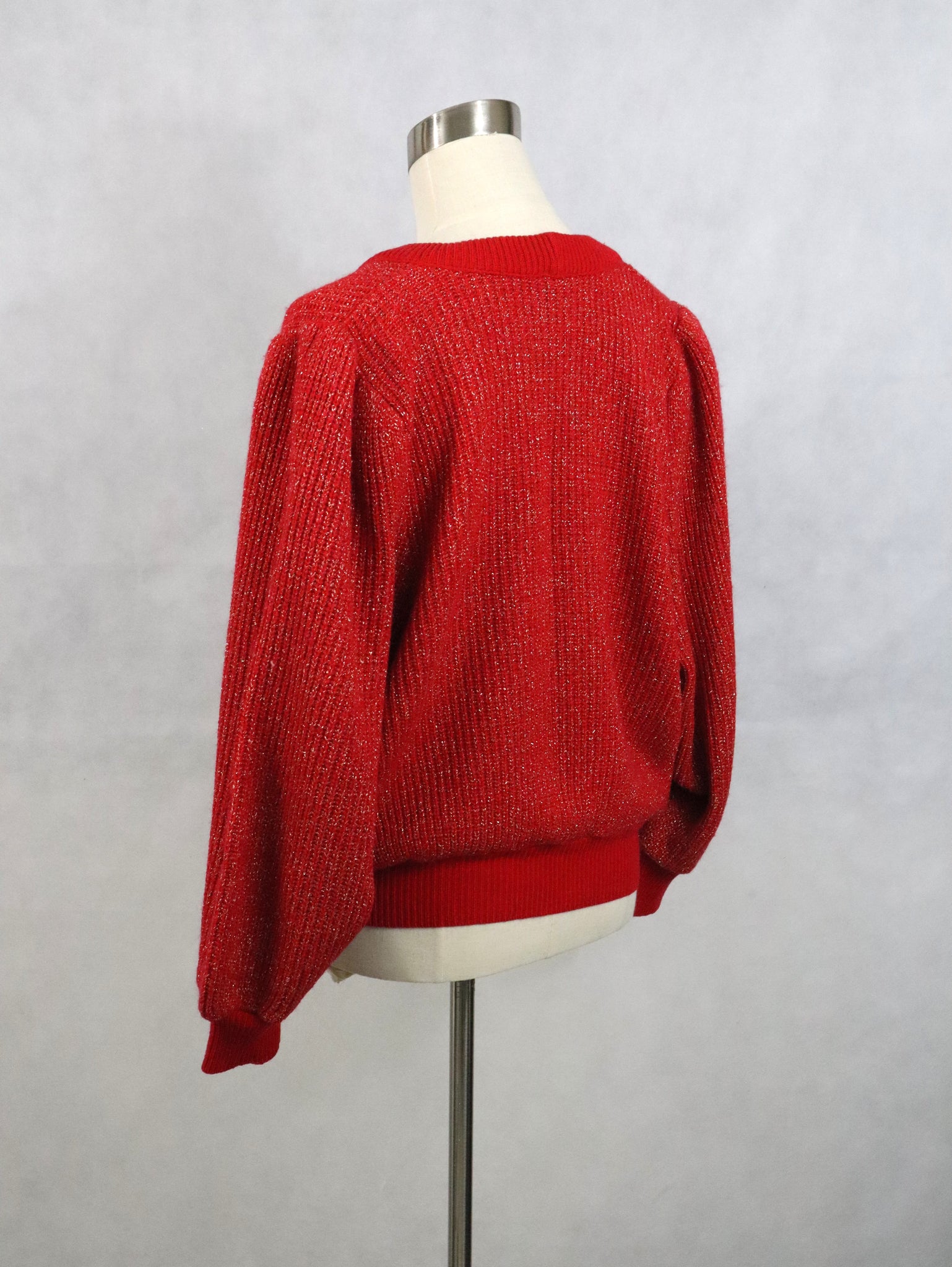 Vuolan made in Finland punainen kimalteleva lurex-neuletakki