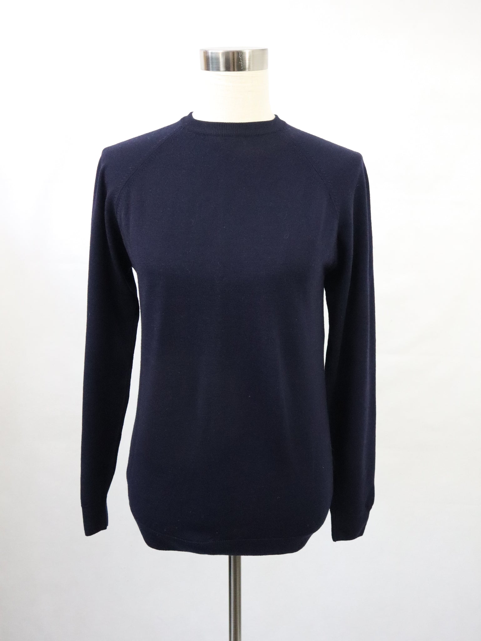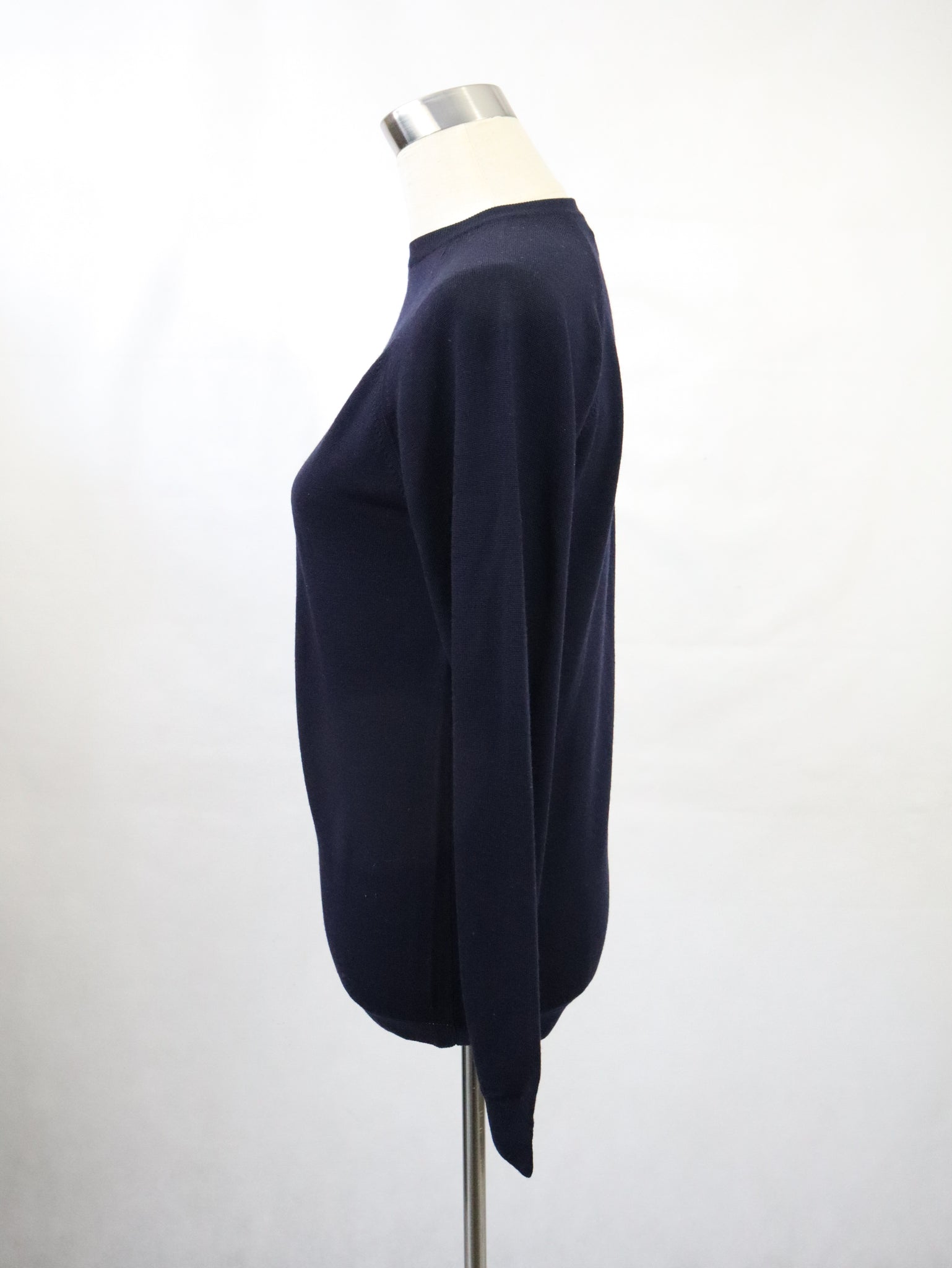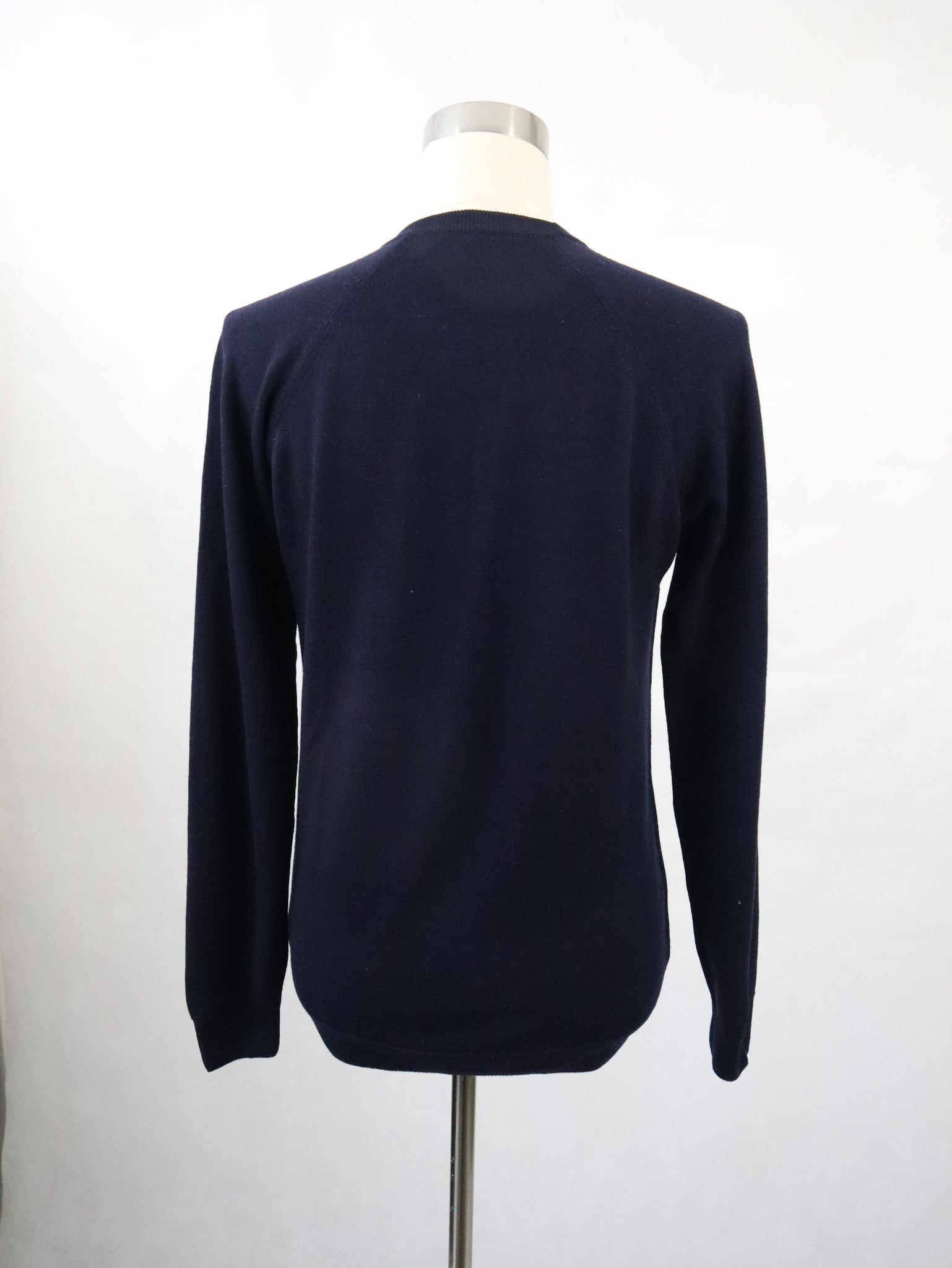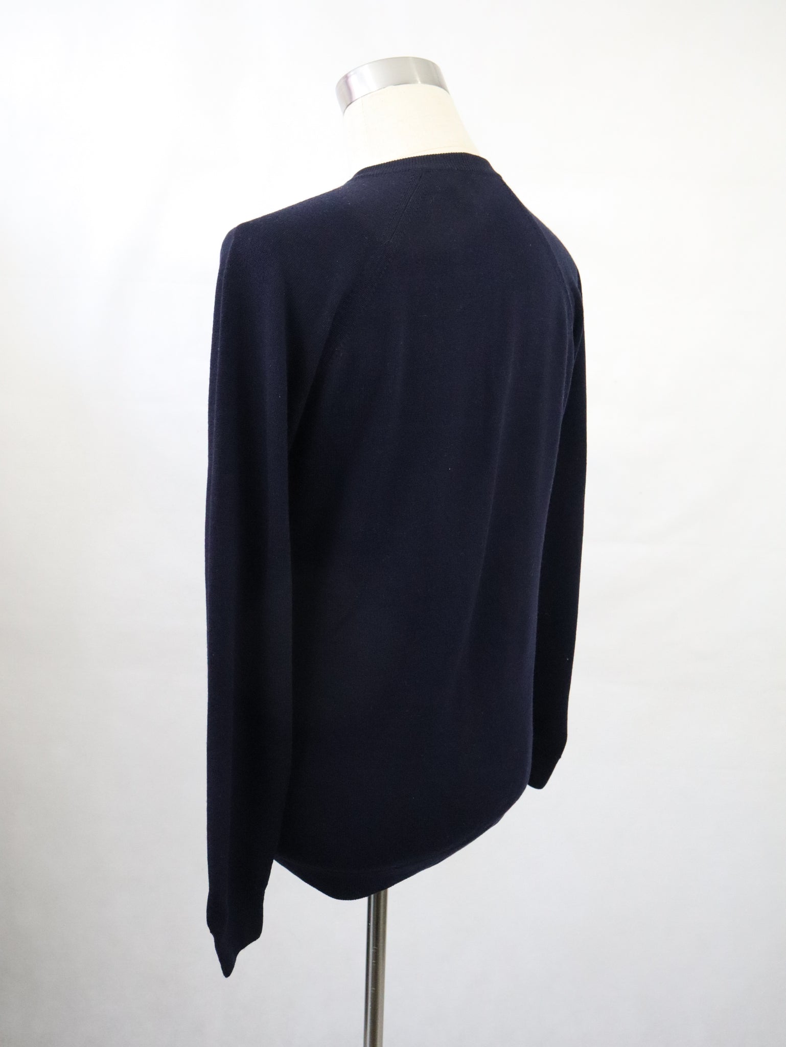 Tummansininen villapaita 80-luvulta, valmistaja Vuokko, made in England.
