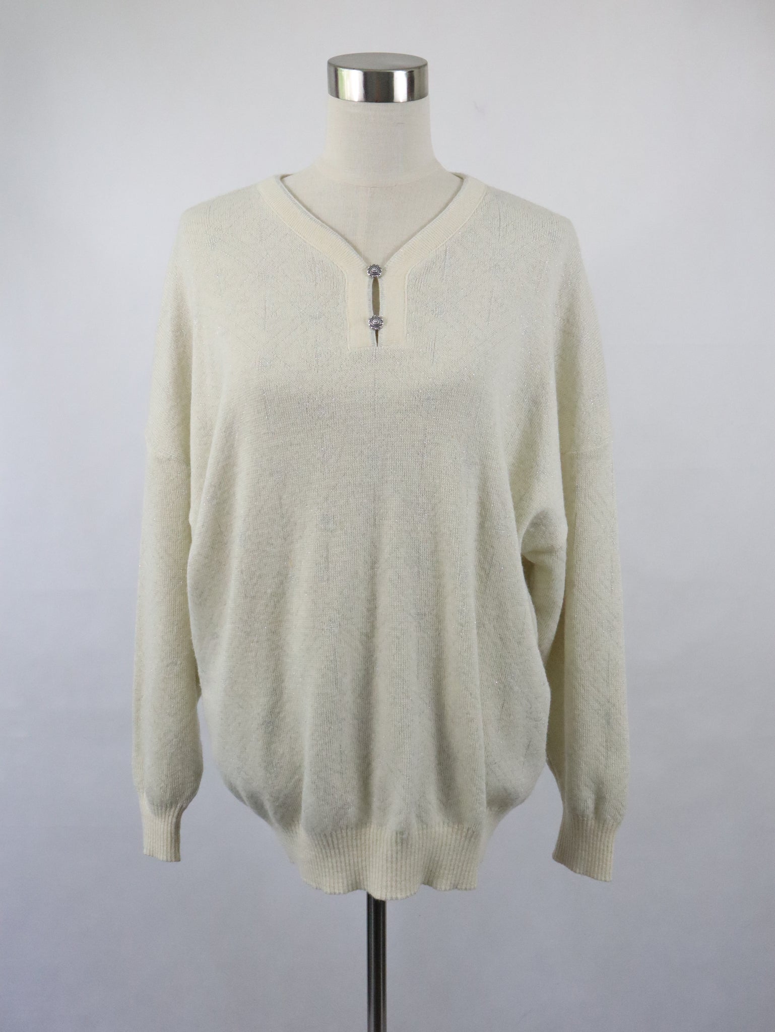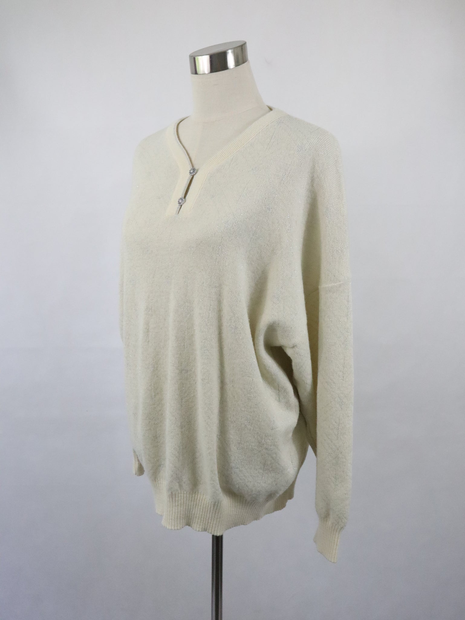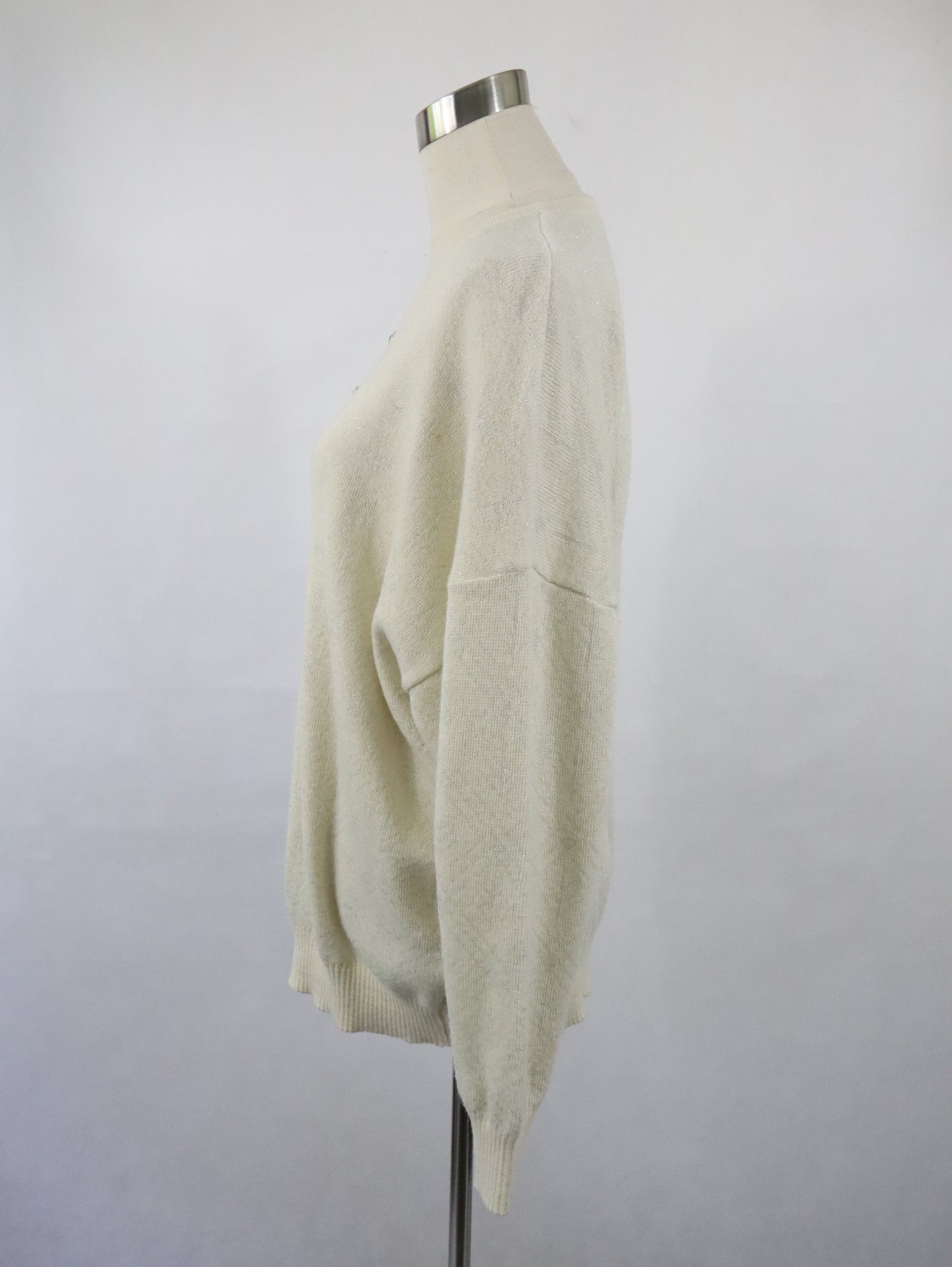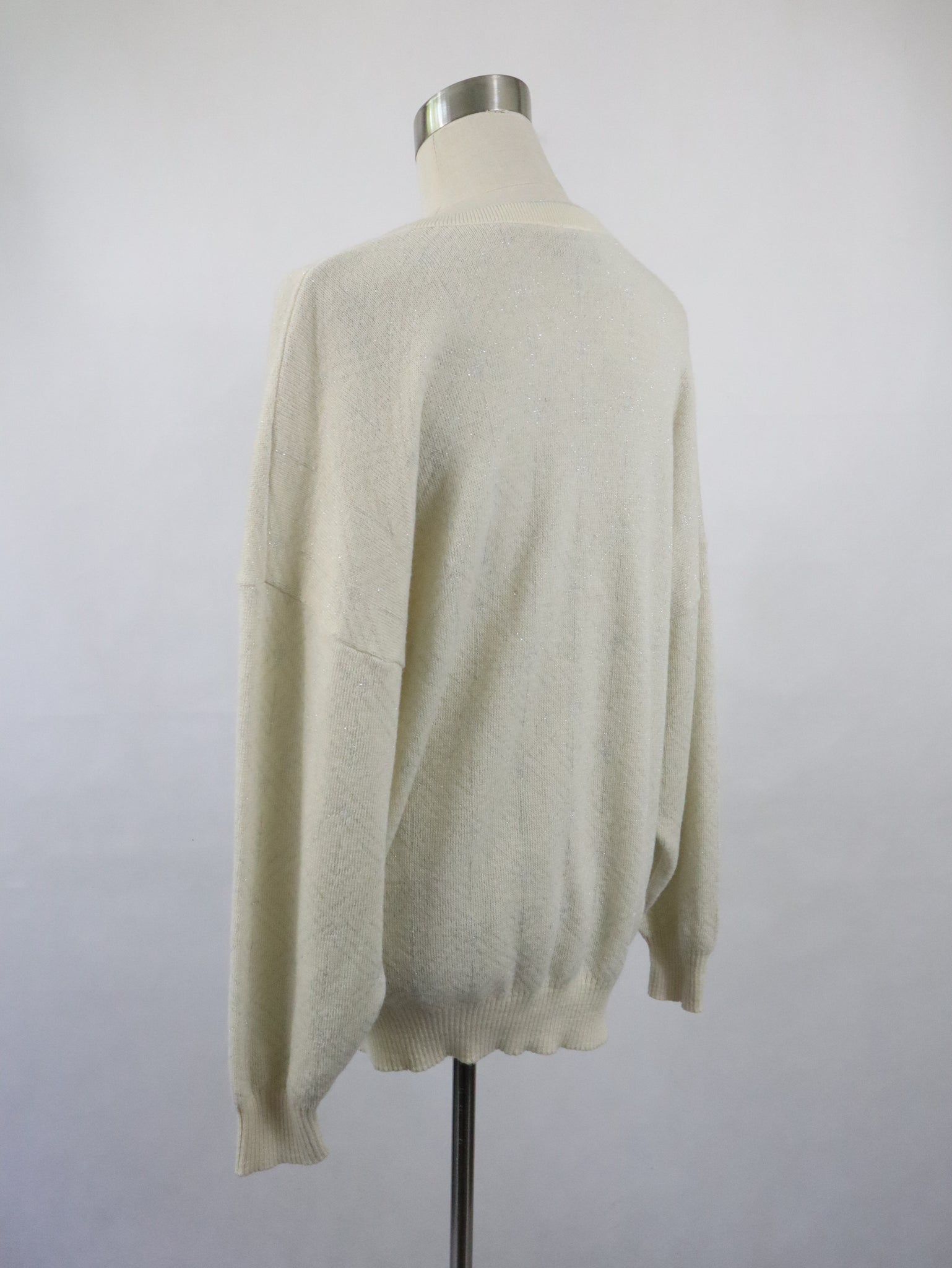 Valkoinen neulepusero hopeanhohtoisella kimalteella