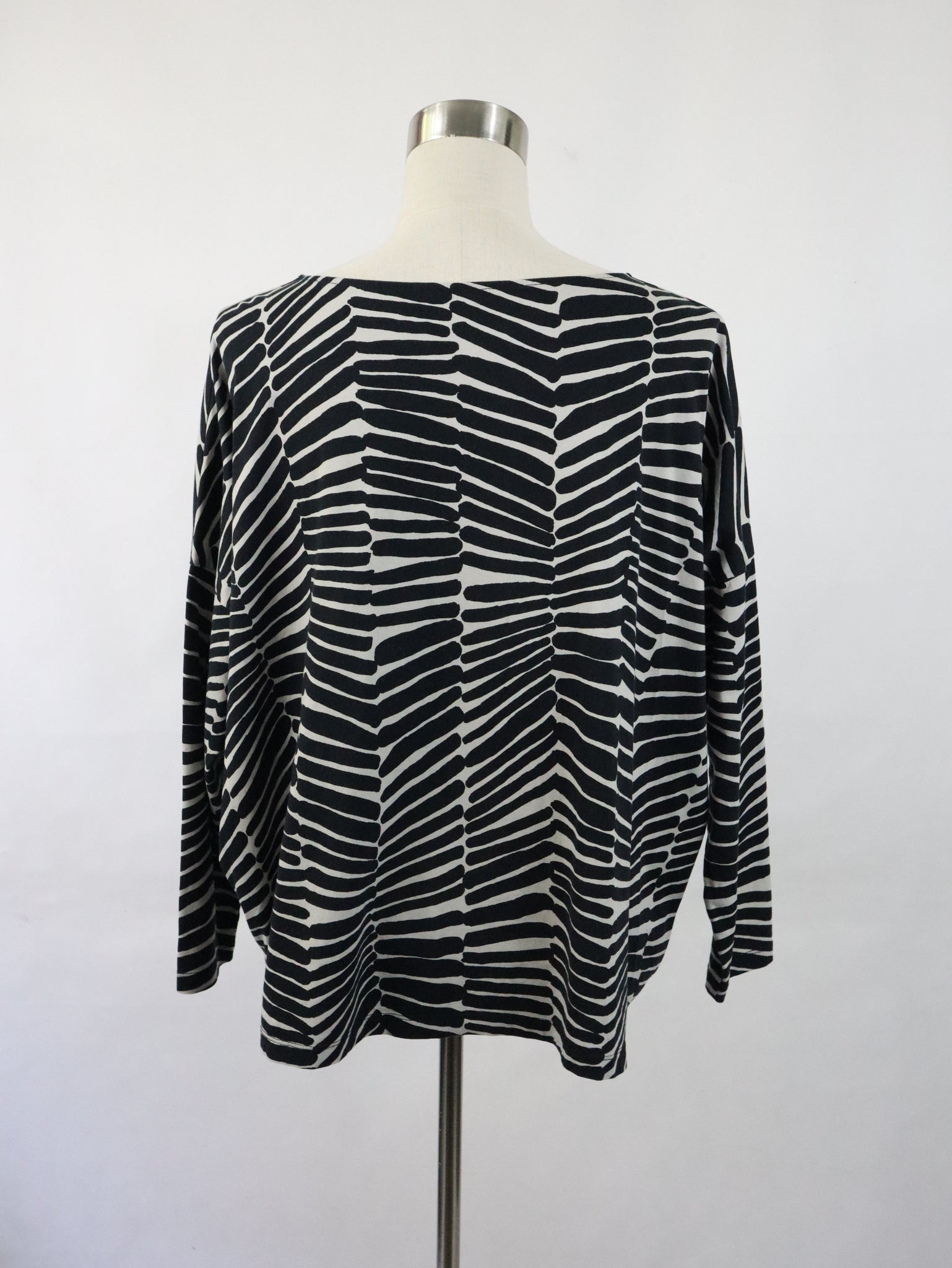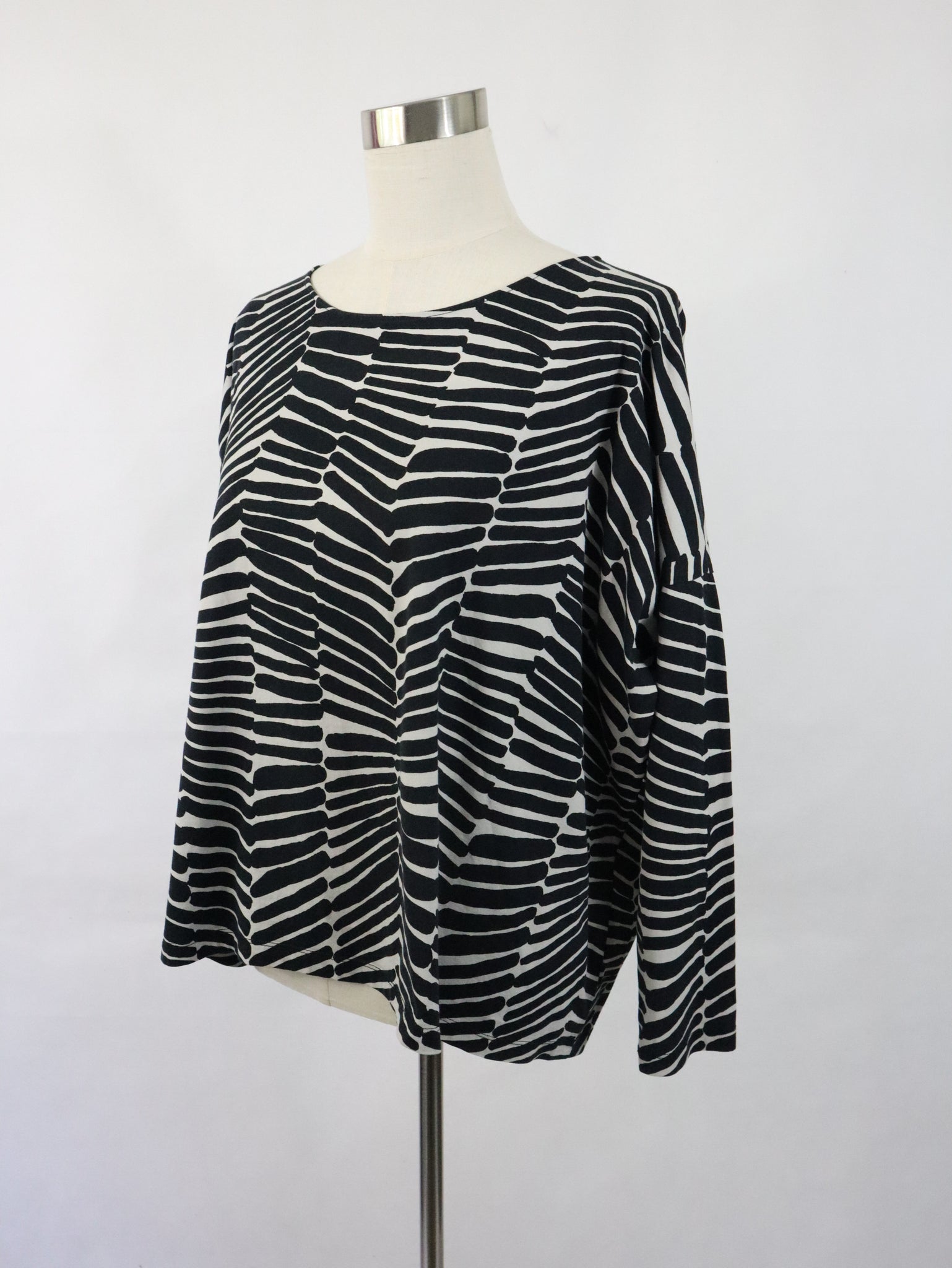 Mustavalkoinen kuviollinen pusero, valmistaja Marimekko.