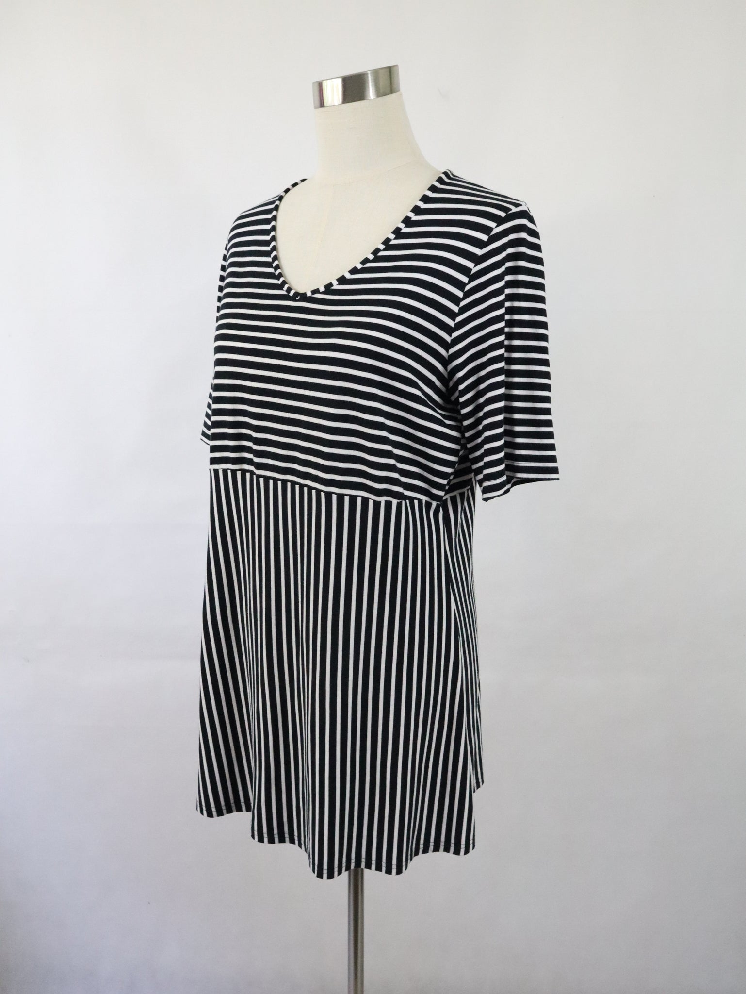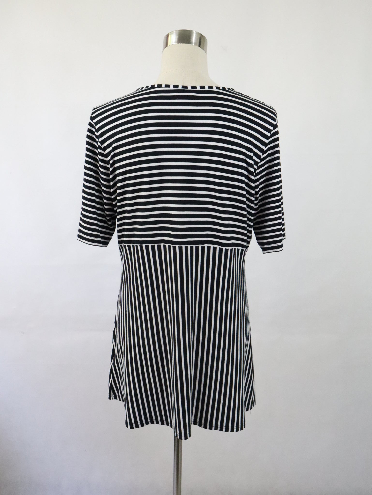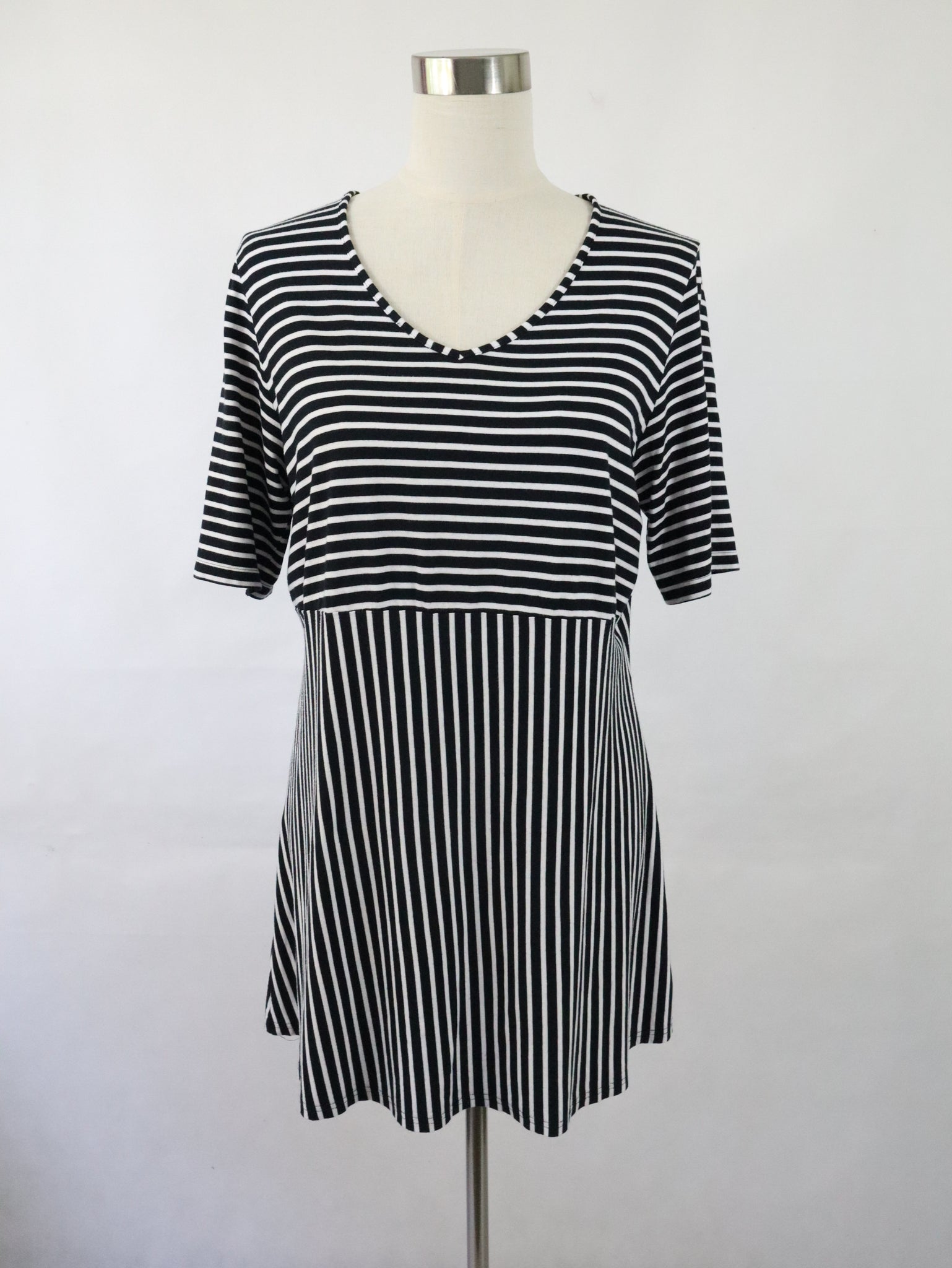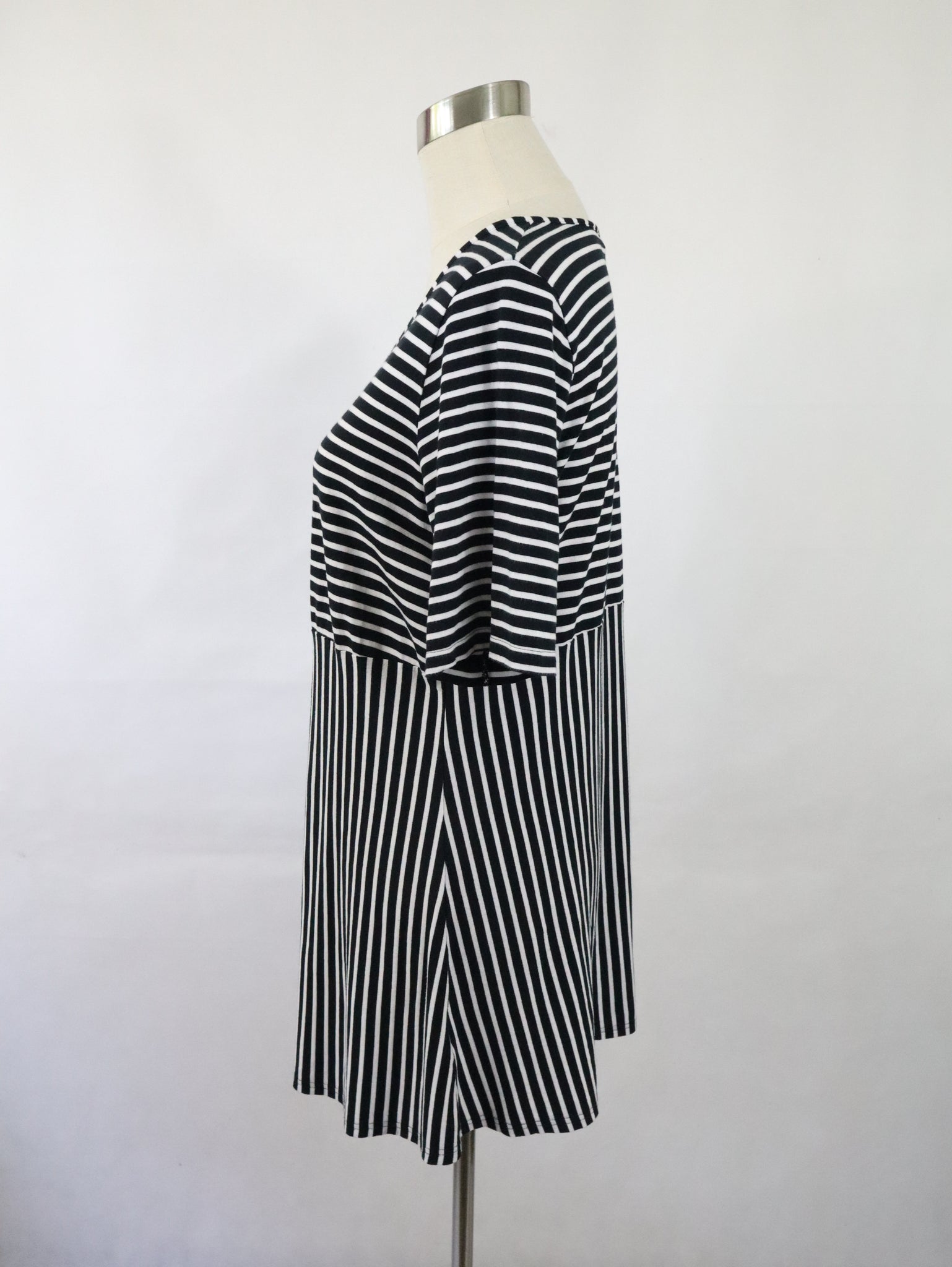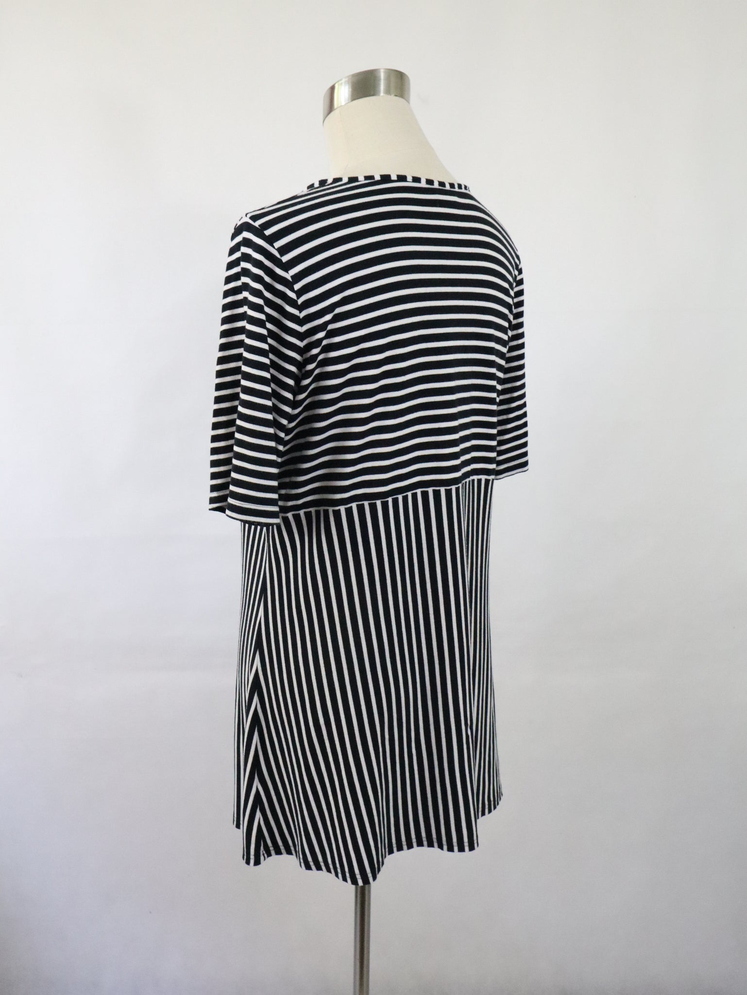 Mustavalkoinen raidallinen lyhythihainen tunika S