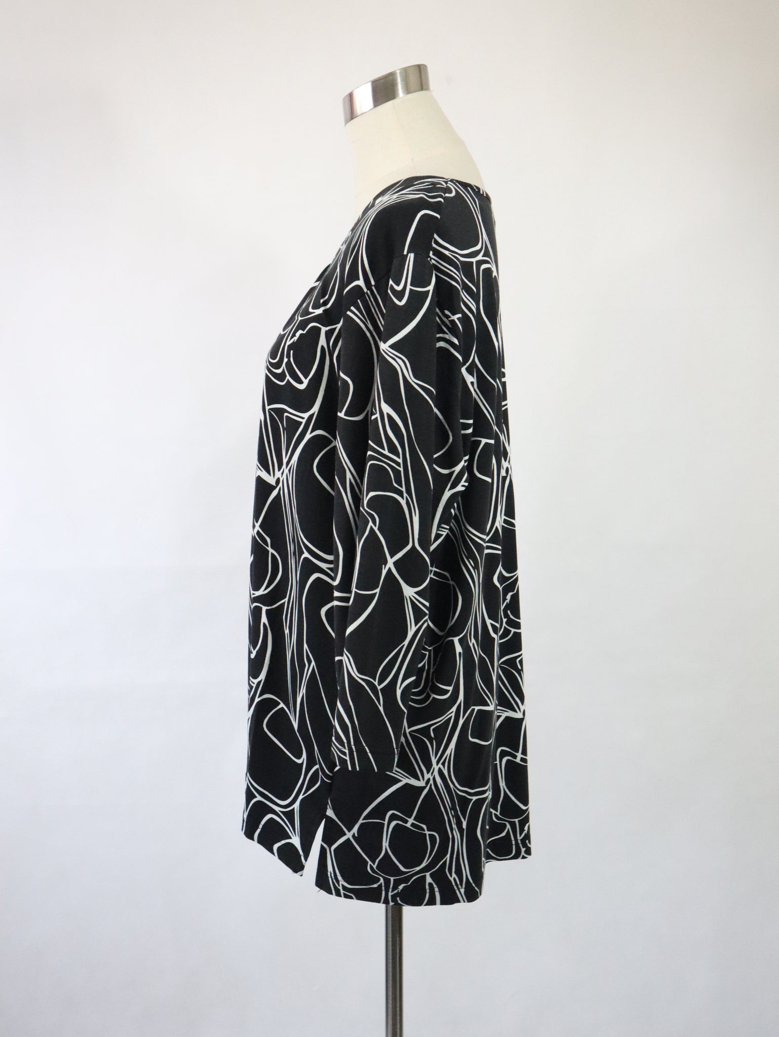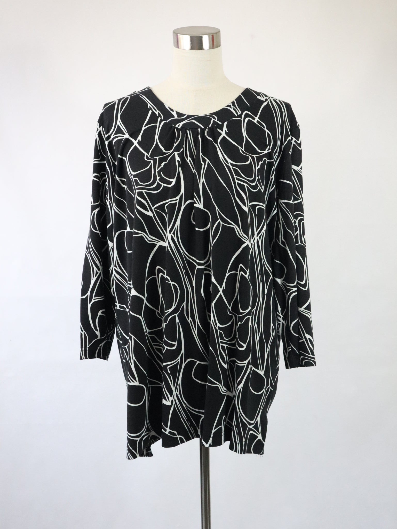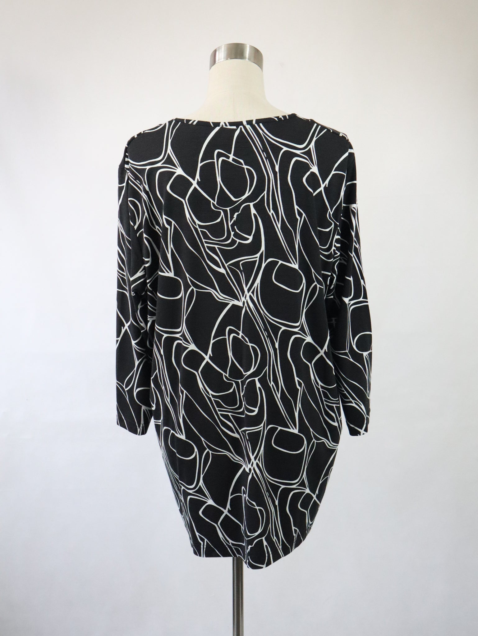 Finnwear / Nanso Group Oy, Finland mustavalkoinen kuviollinen viskoositunika XXL