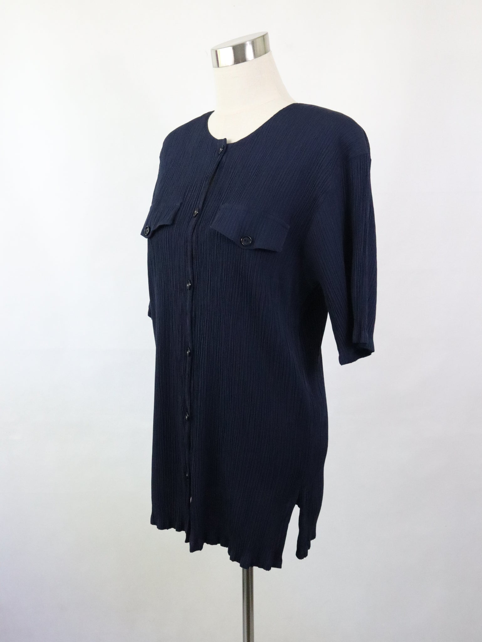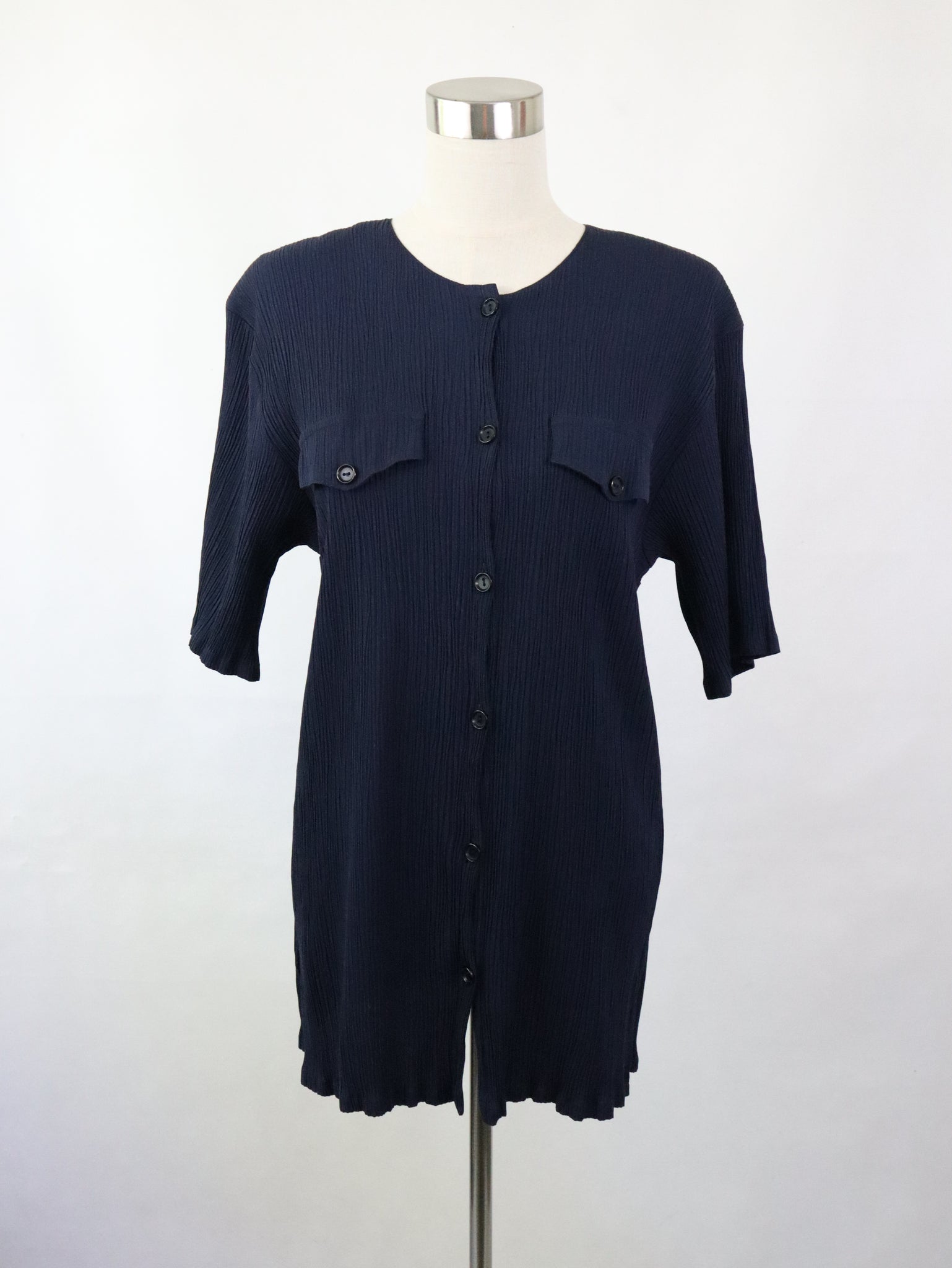 Tummansininen kreppiviskoosipusero 80-90-luvulta