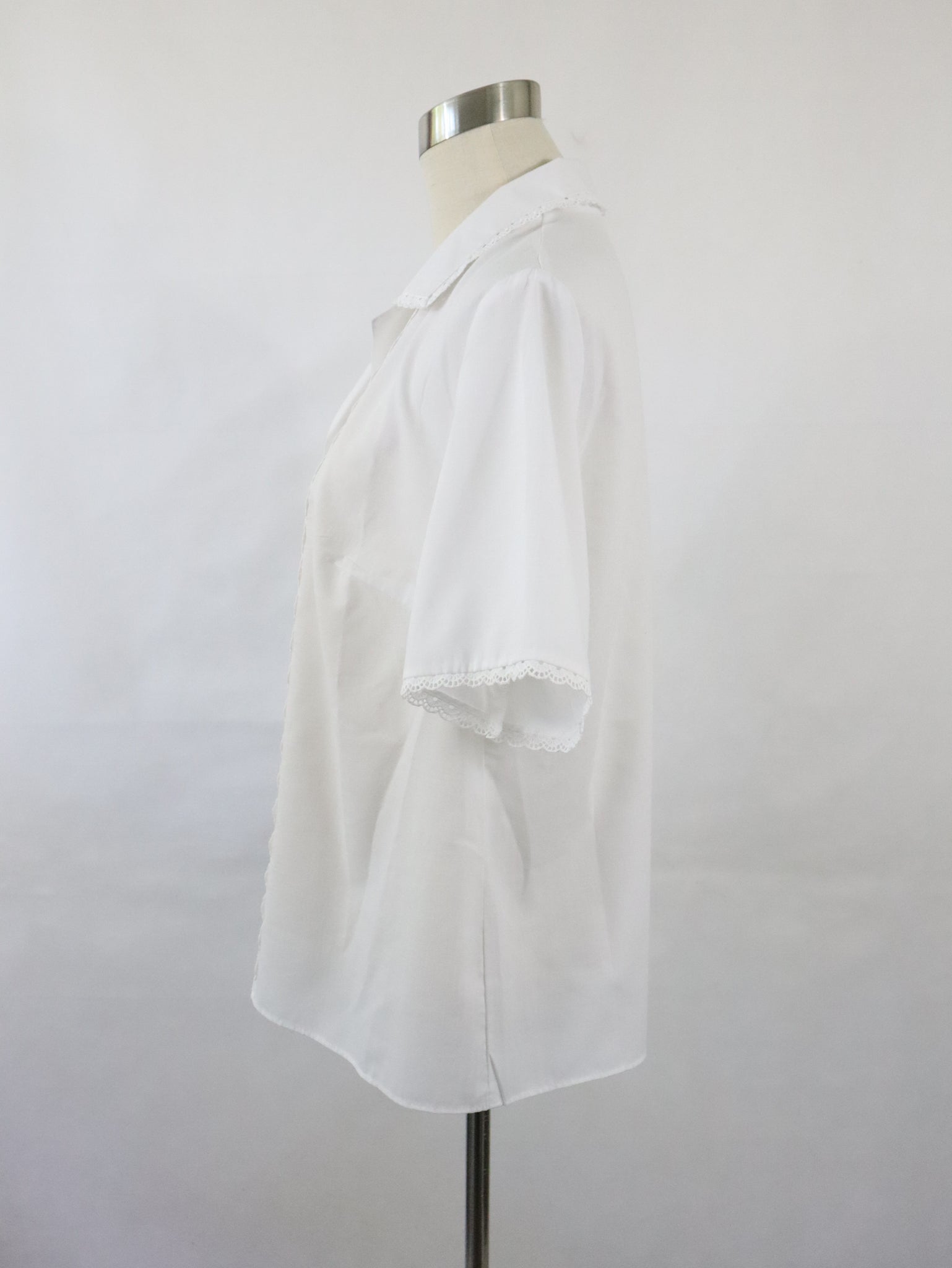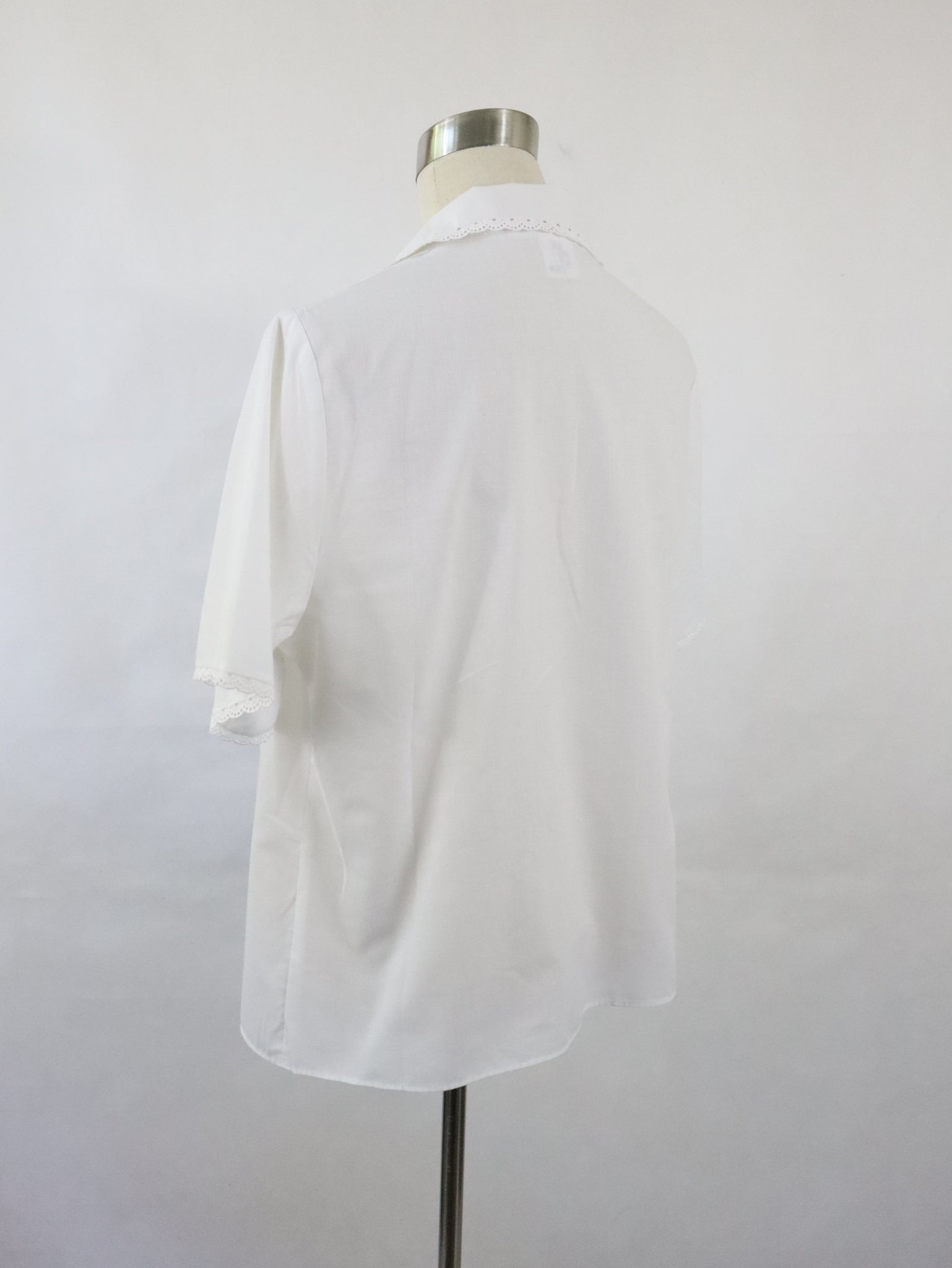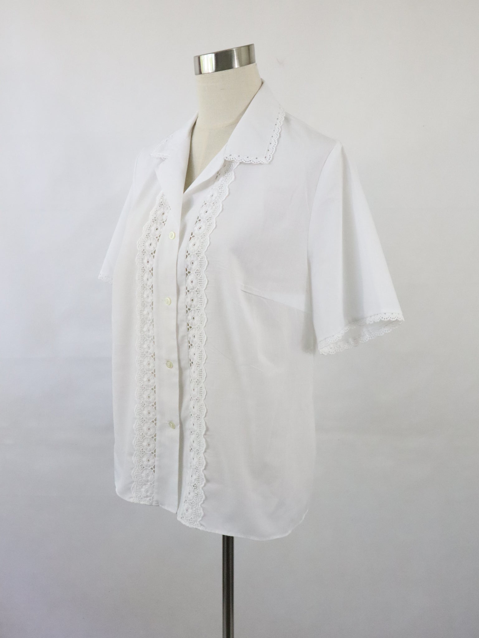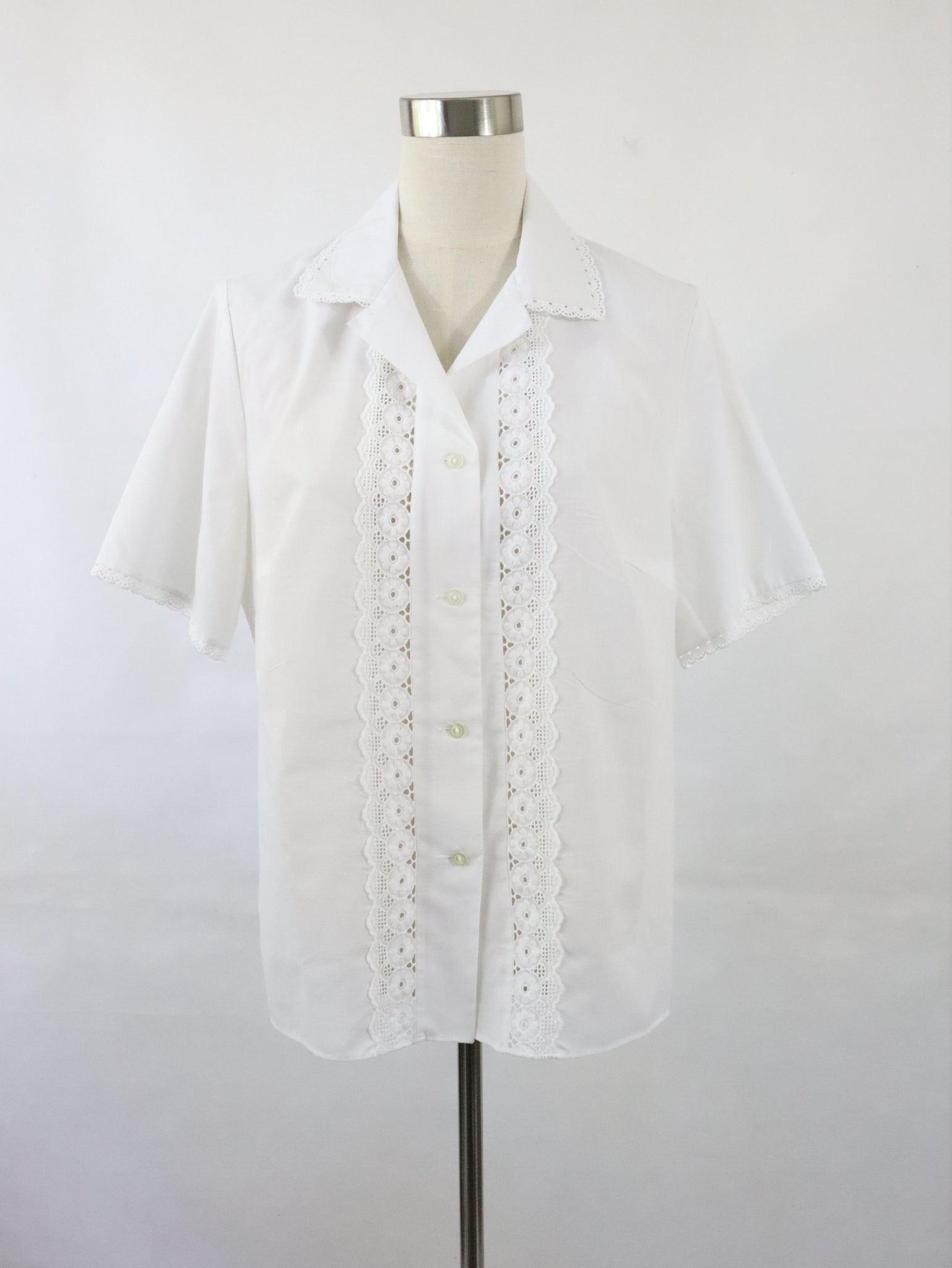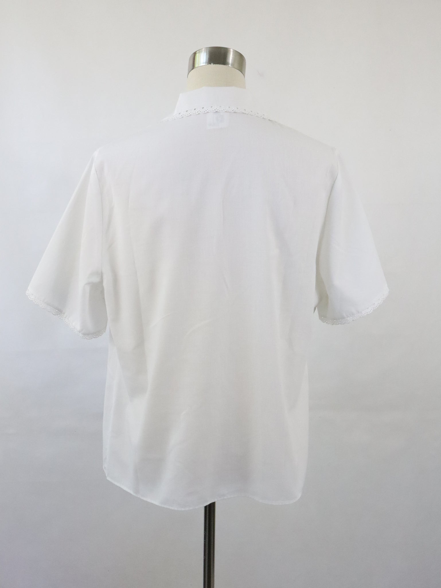 Nina Naisten Pukutehdas Oy Finland lyhythihainen valkoinen pitsisomisteinen vintagepusero D42