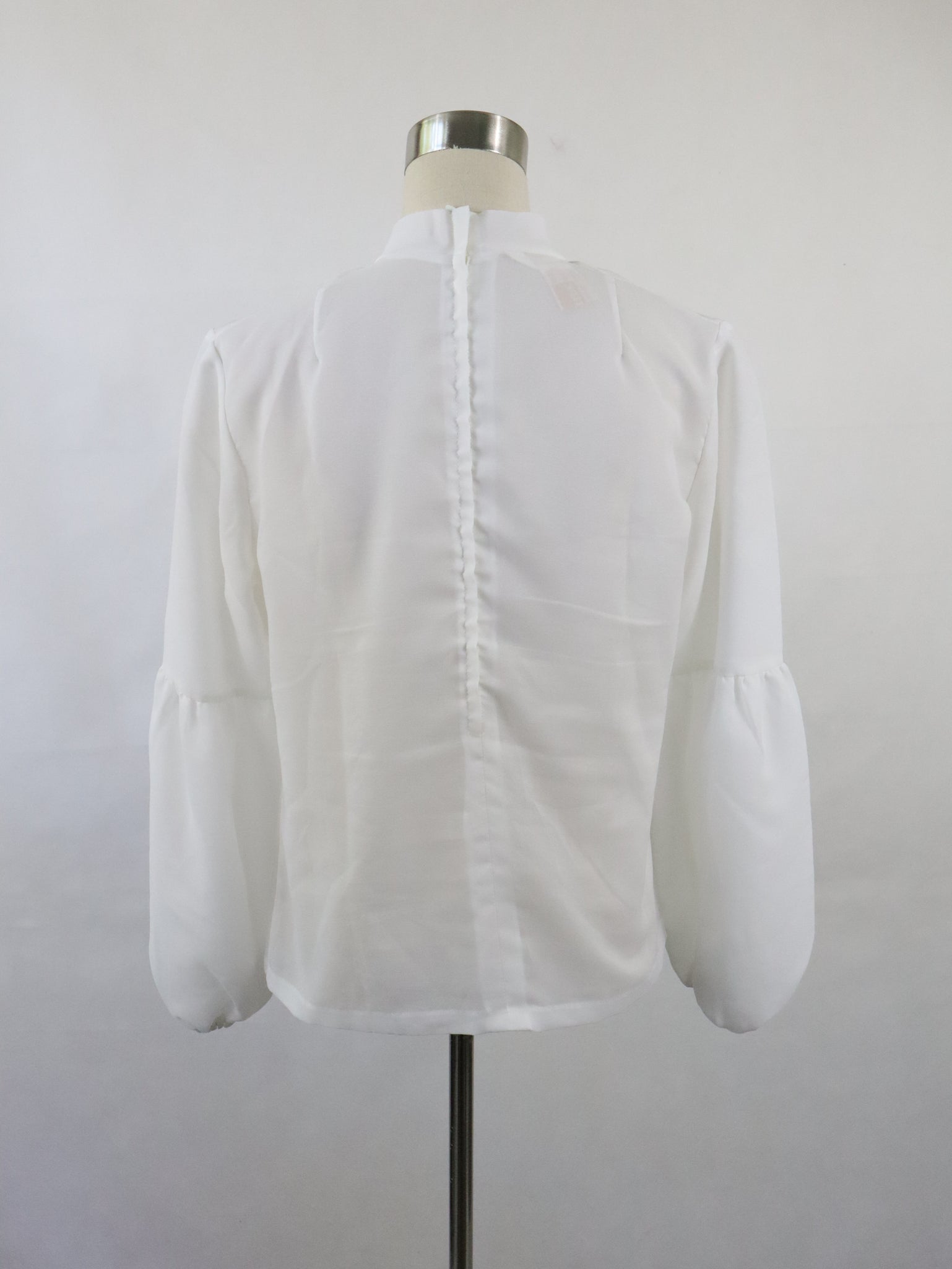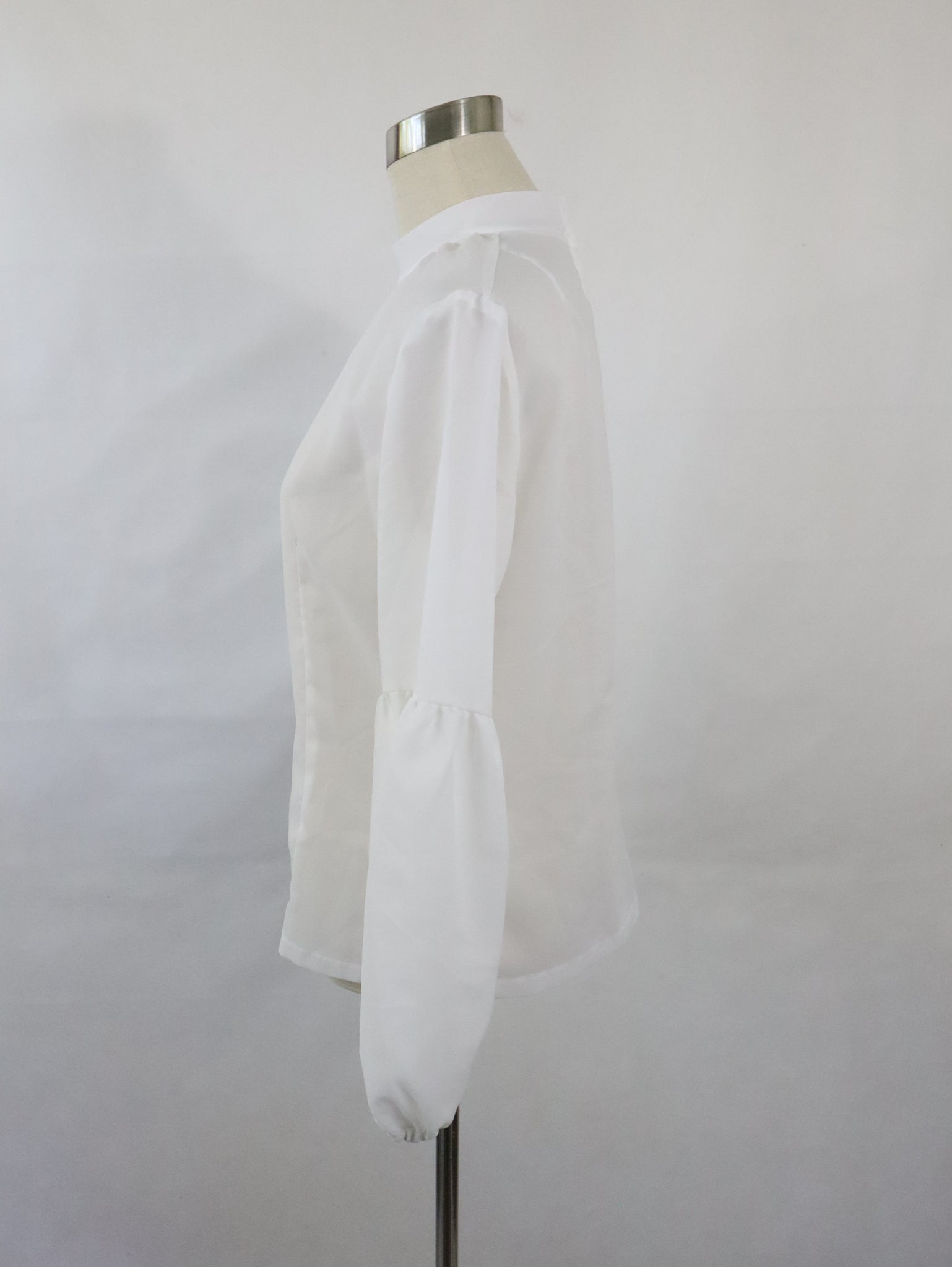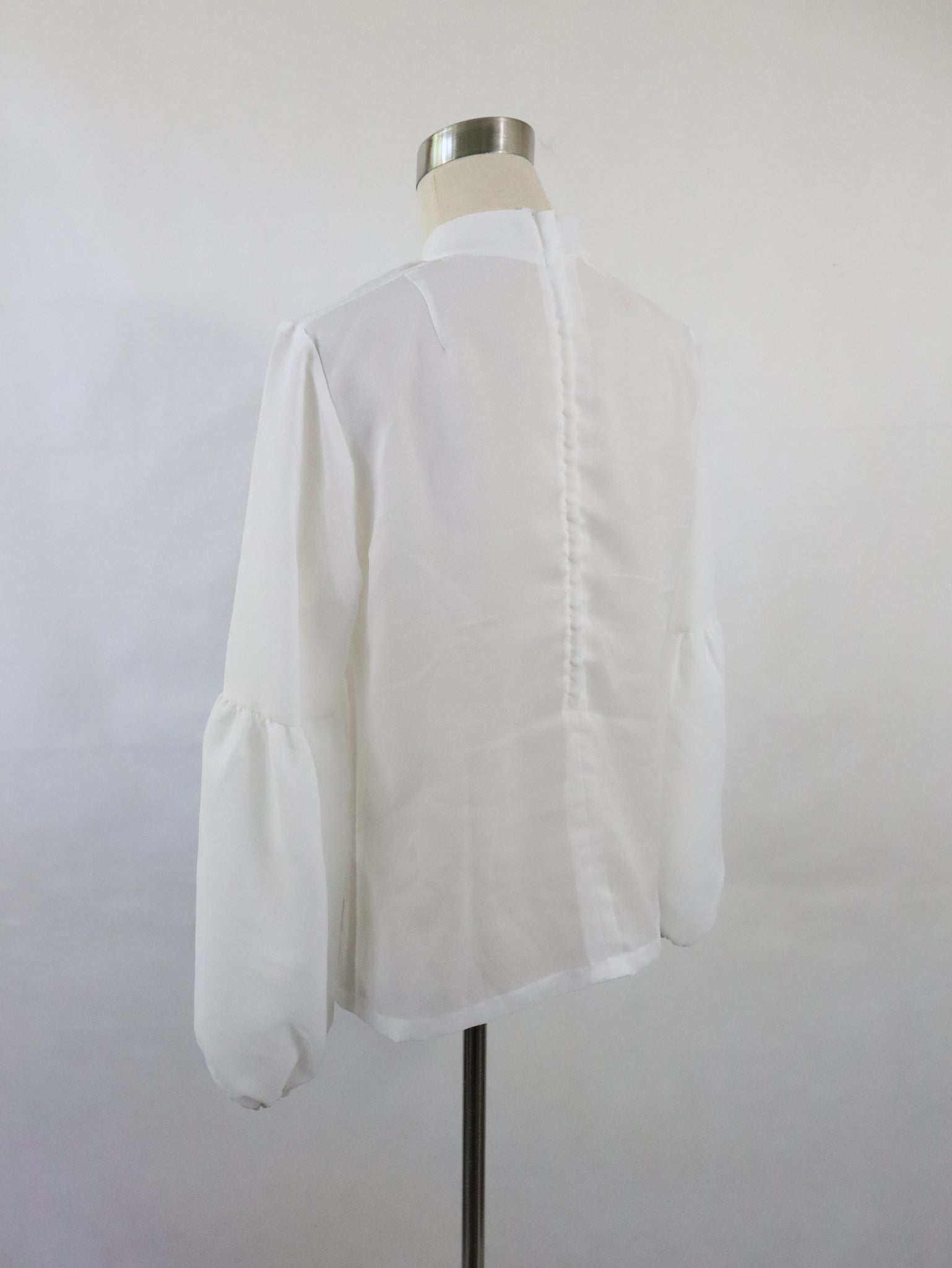 Sataneule valkoinen puhvihihainen kotimainen vintage sifonkipusero 42