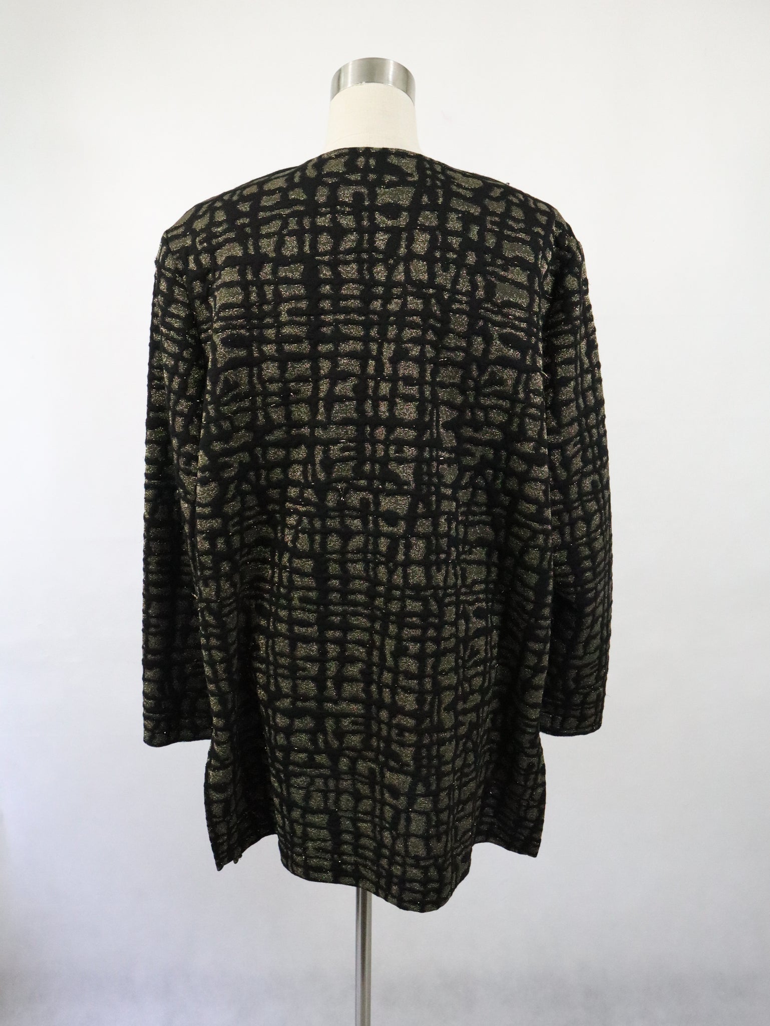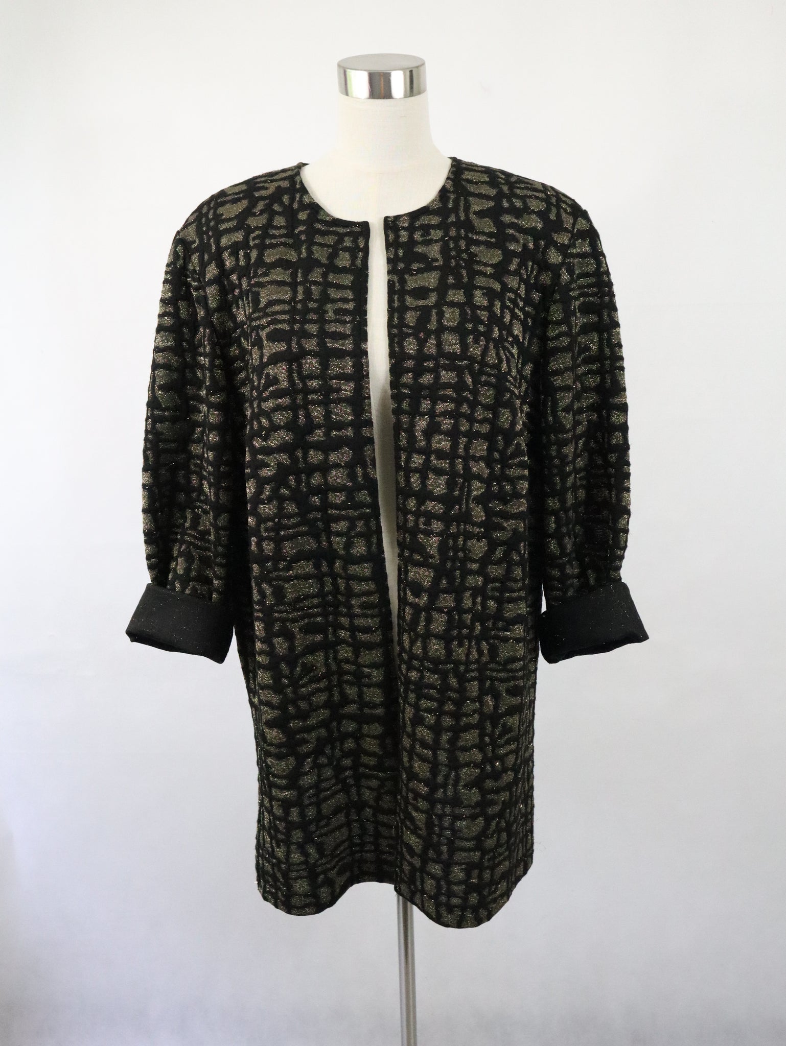 Musta kaulukseton ja vuorittamaton jakku kultakirjailtua neulosta, valmistaja L Collection.