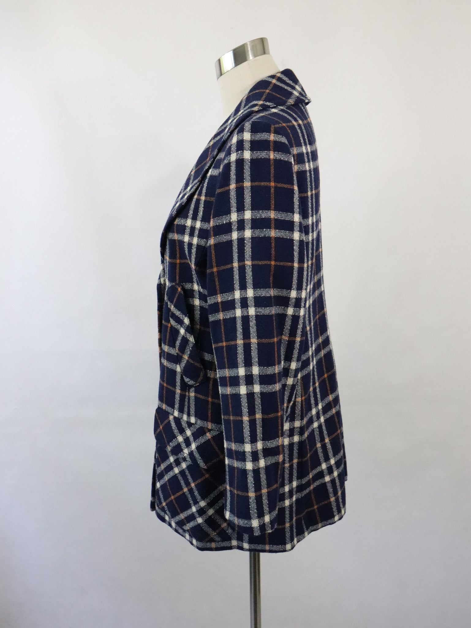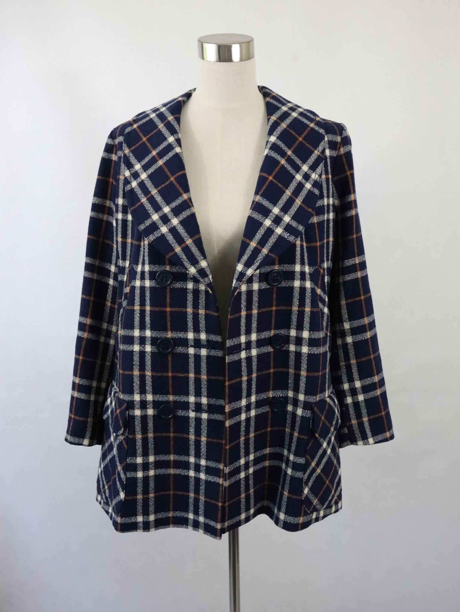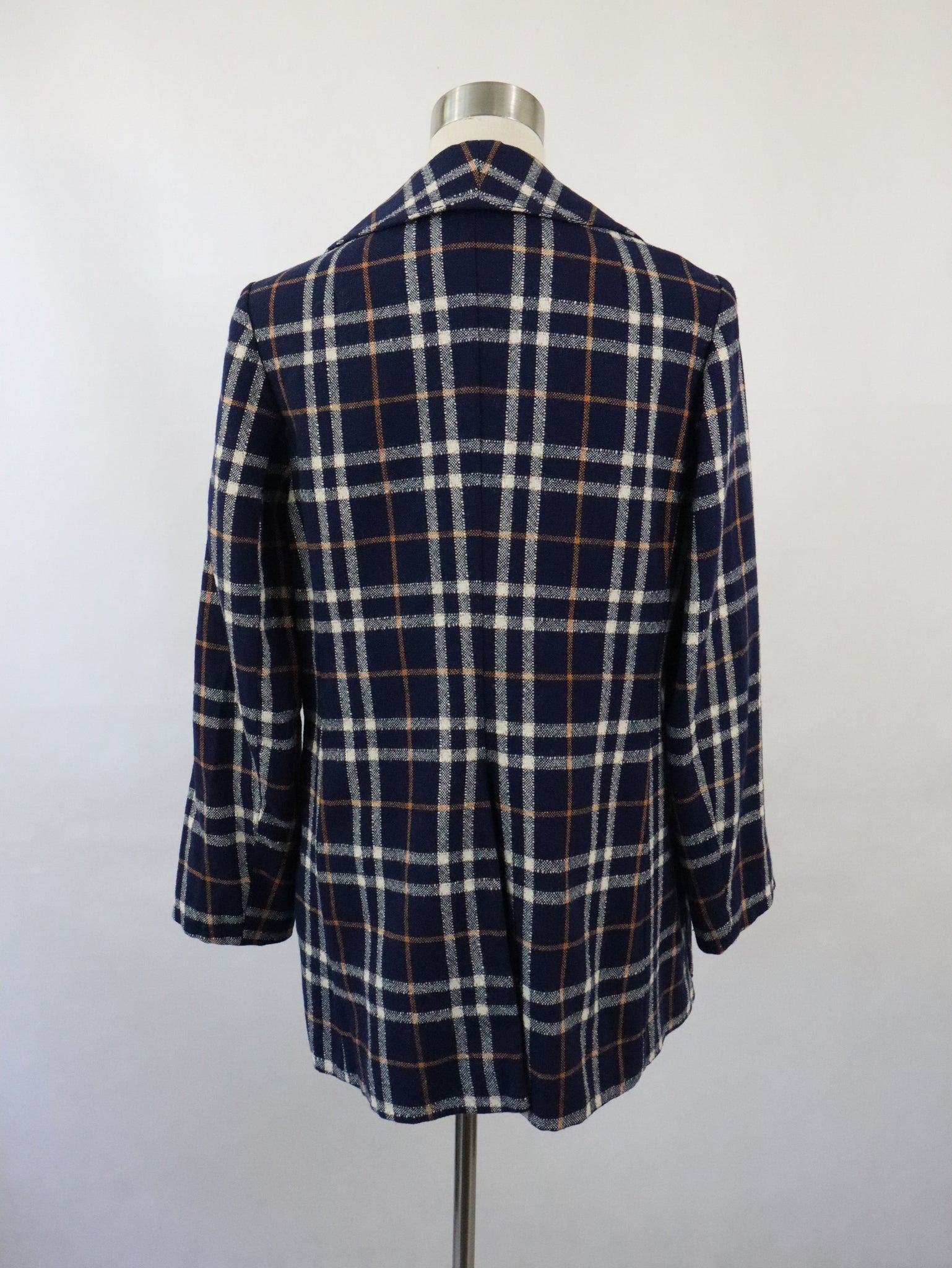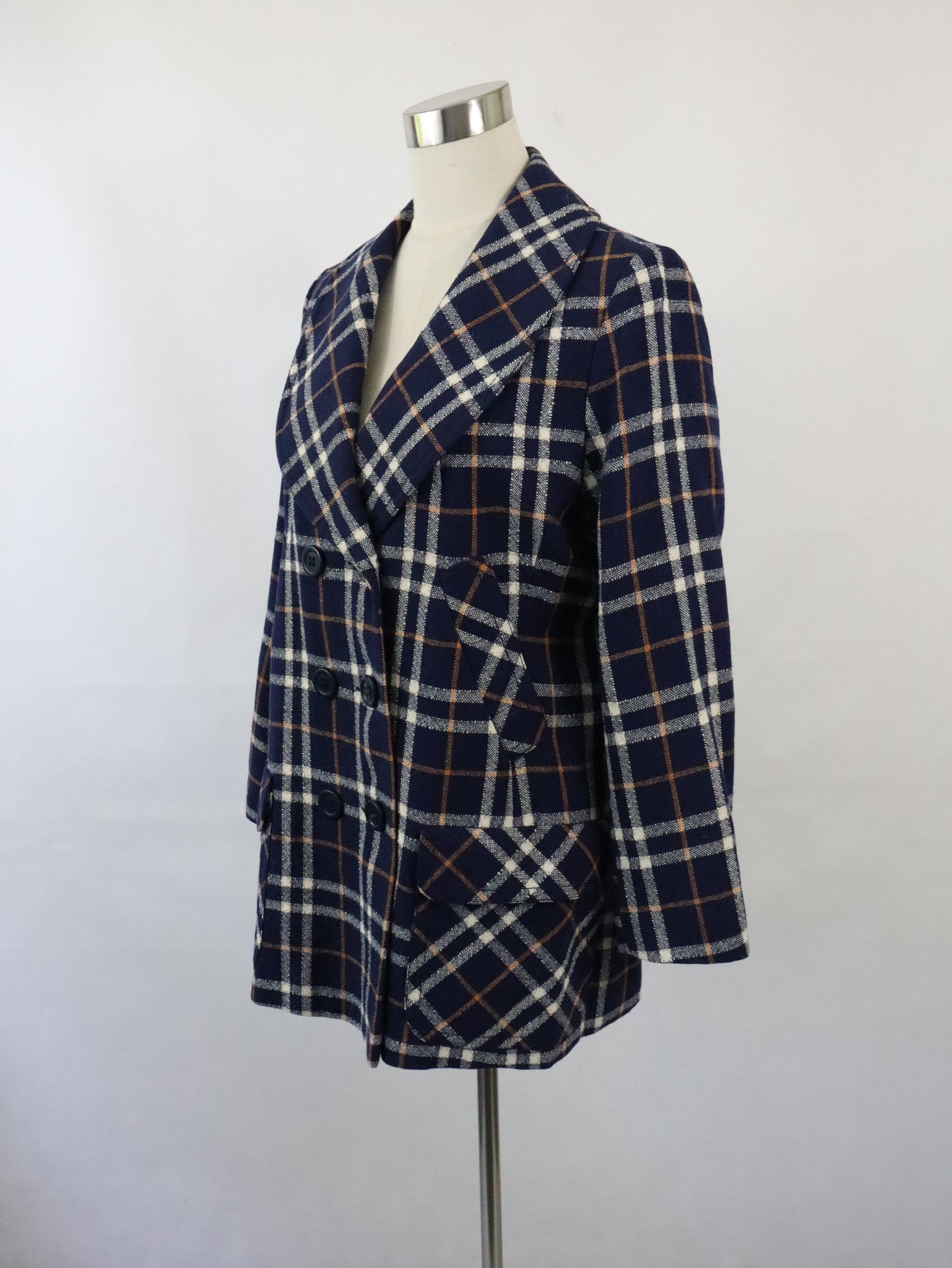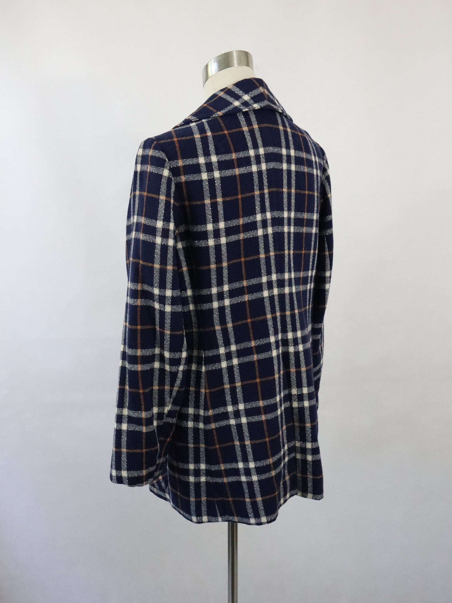 Kaunotar Finn Fashion kotimainen 70-luvun vintage tummansininen ruudullinen villakangastakki C46