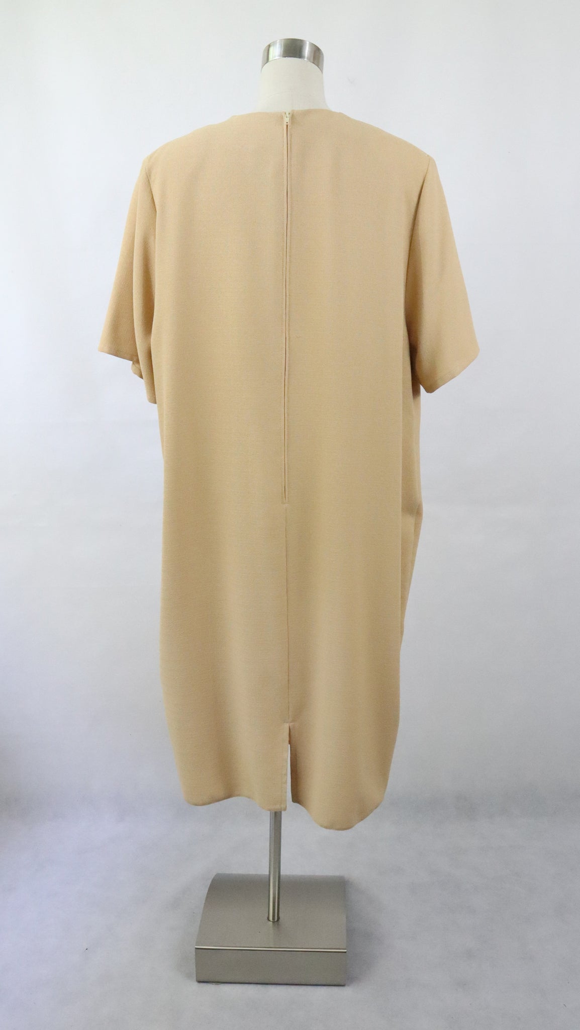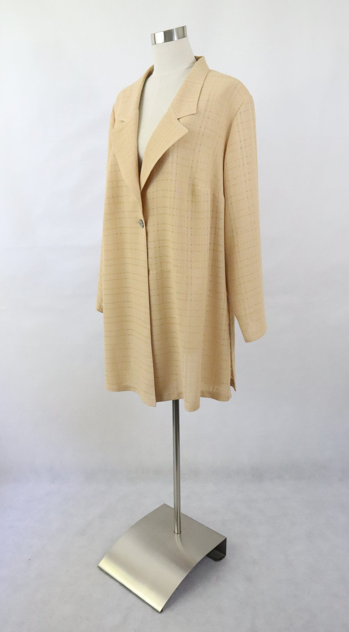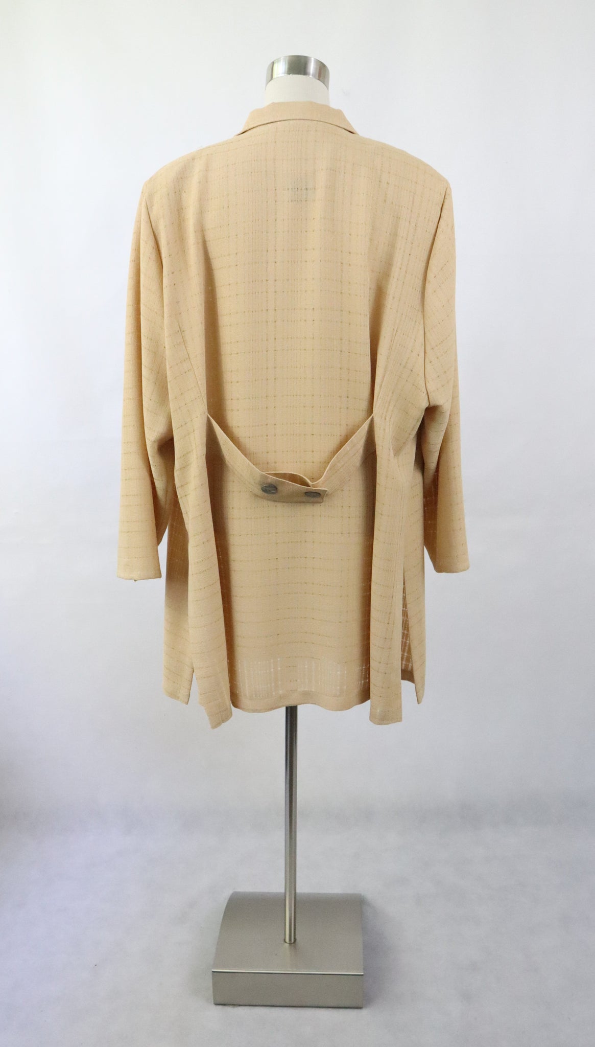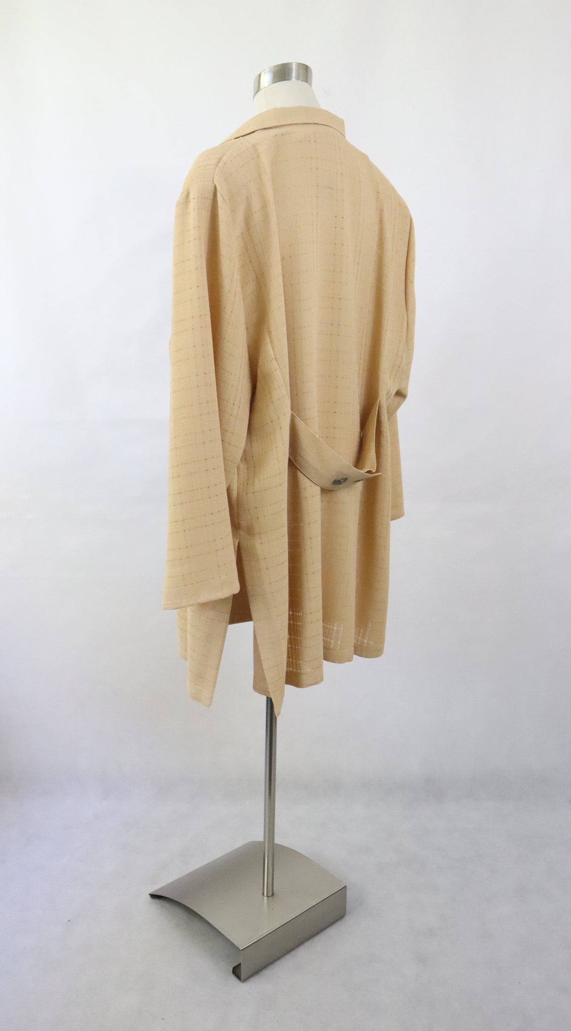 Beige mekko ja jakku -kokonaisuus kotimaista vintagea 90-luvulta