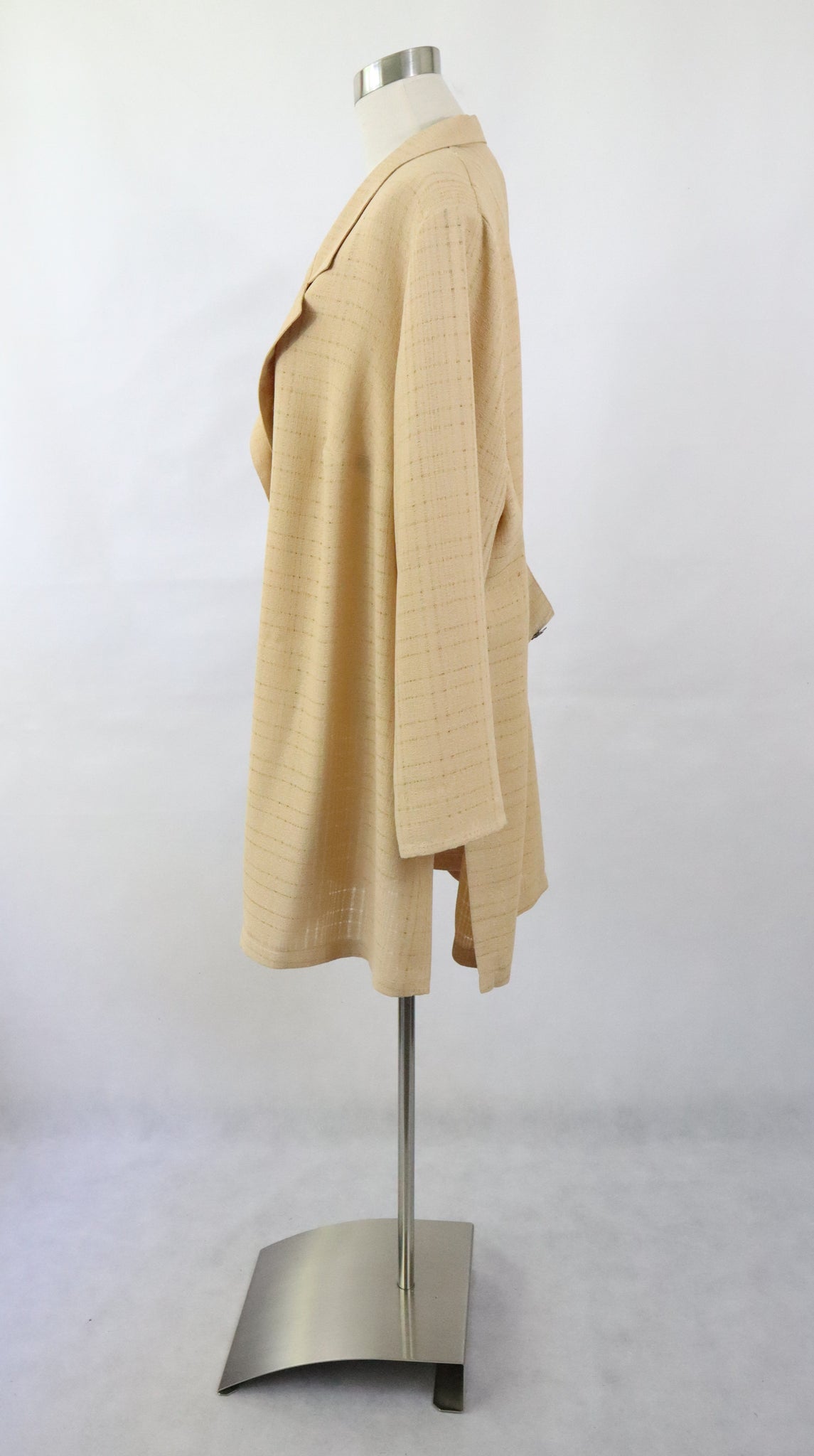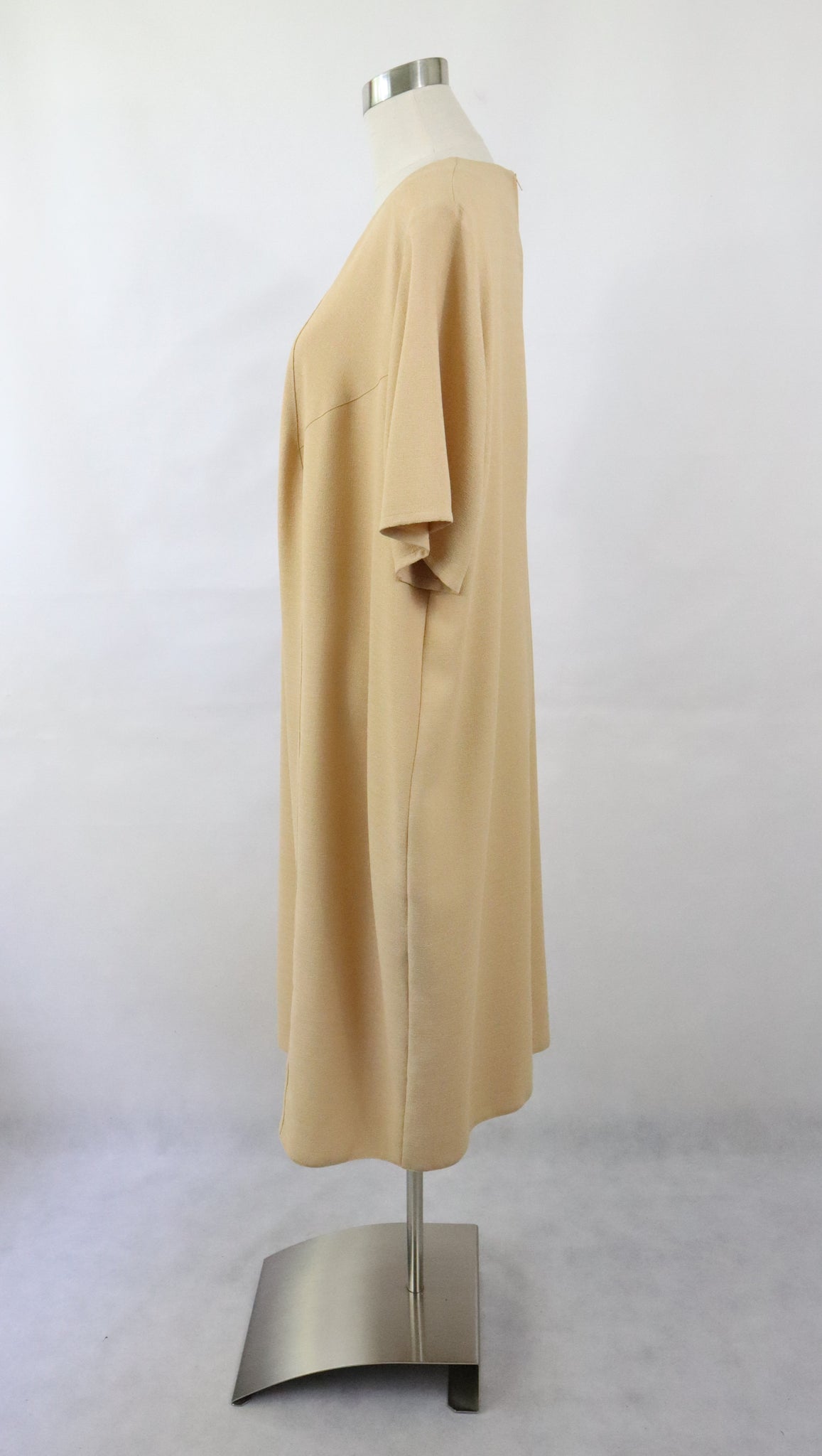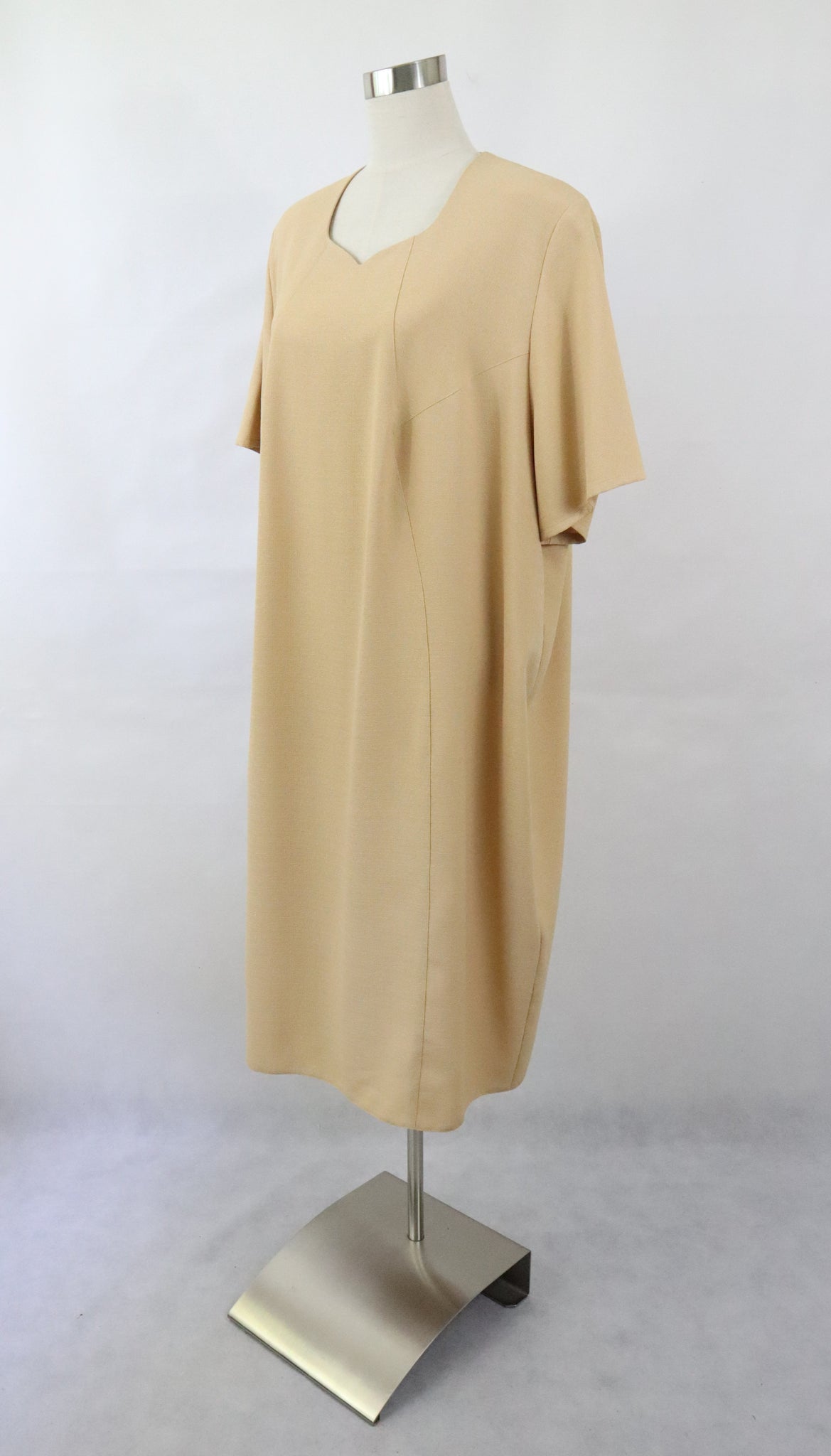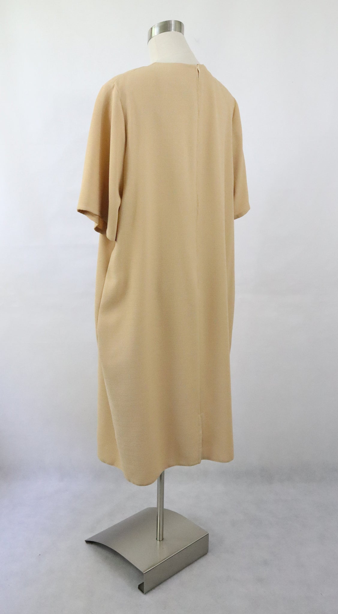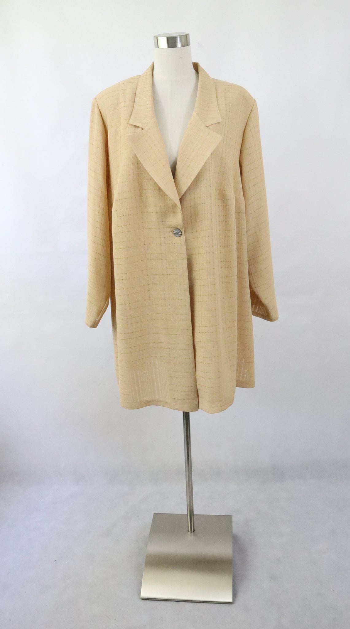 Beige mekko ja jakku -kokonaisuus kotimaista vintagea 90-luvulta