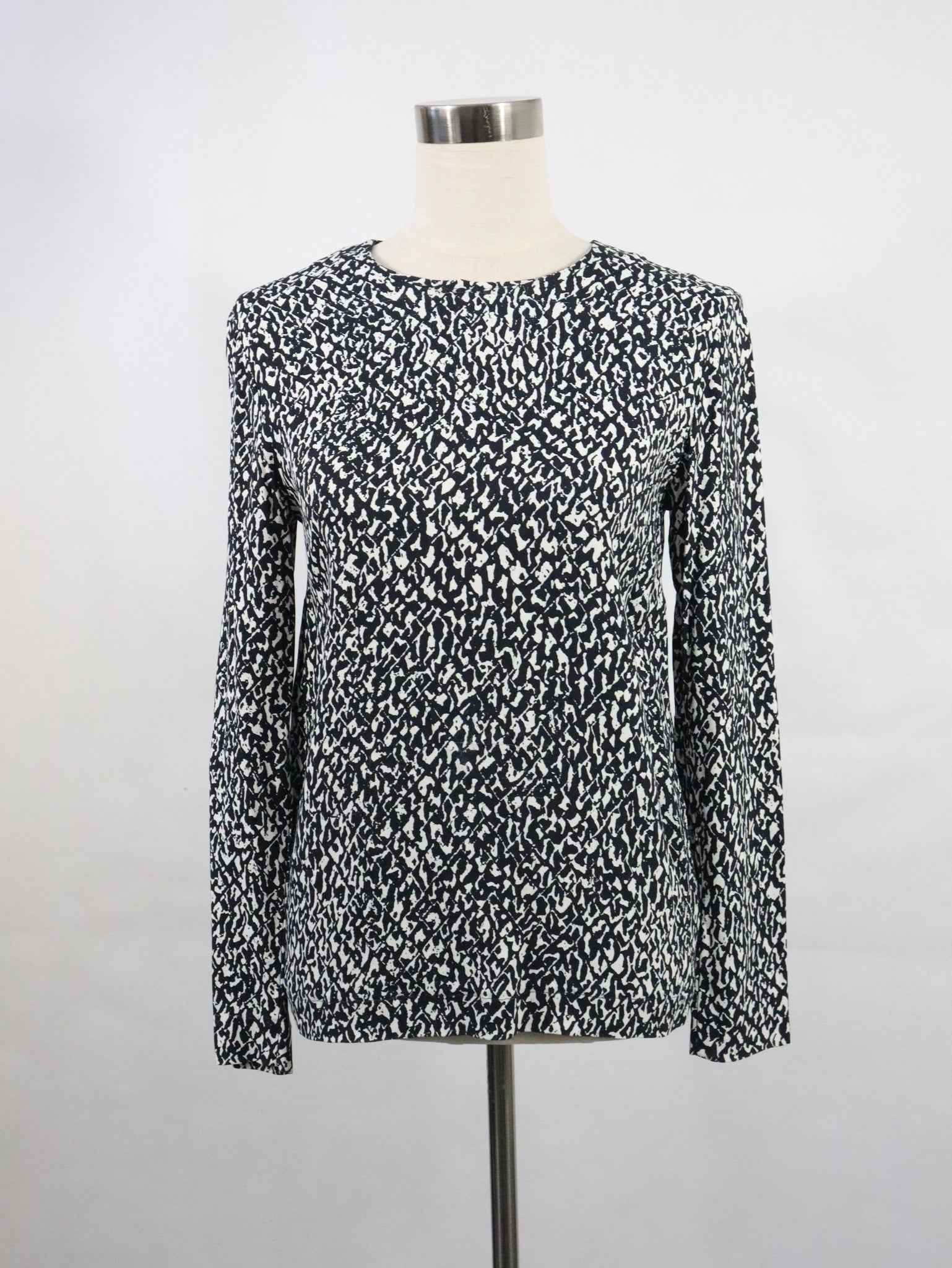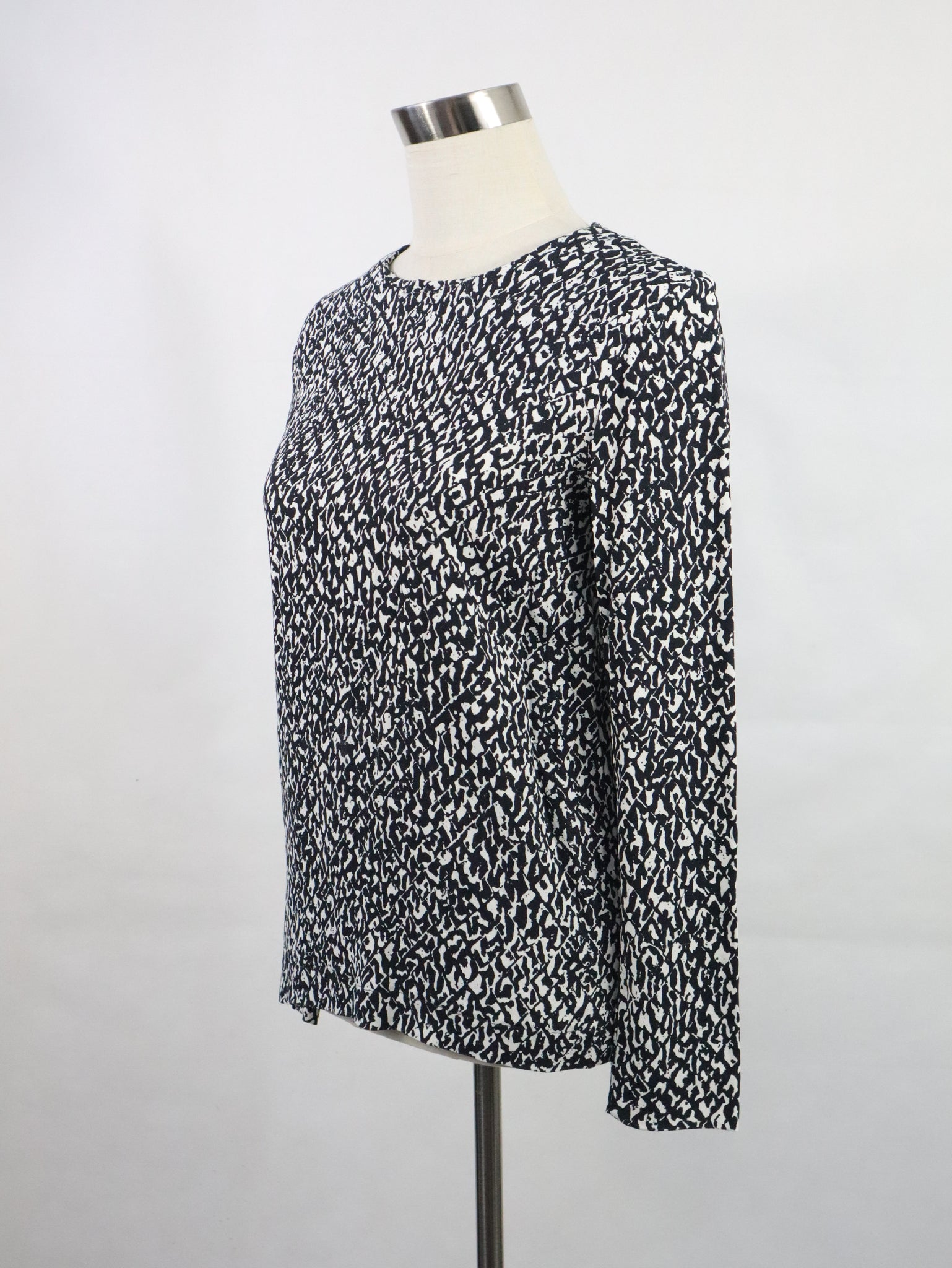 Mustavalkoinen graafisesti kuvioitu pusero, valmistaja Marimekko.
