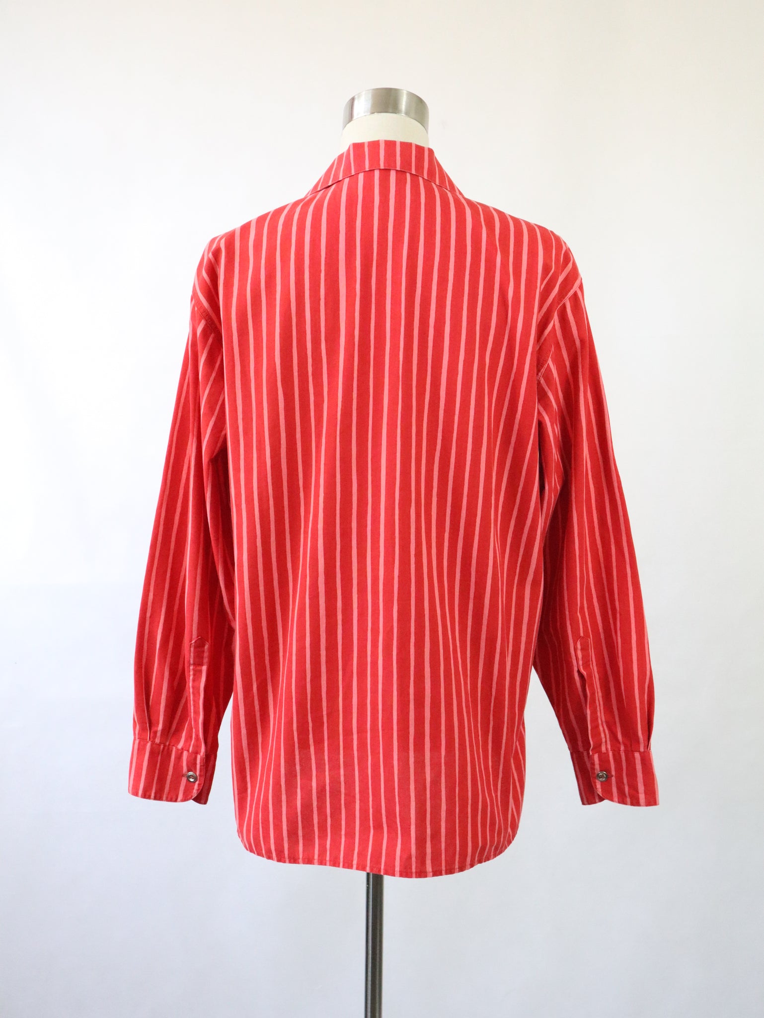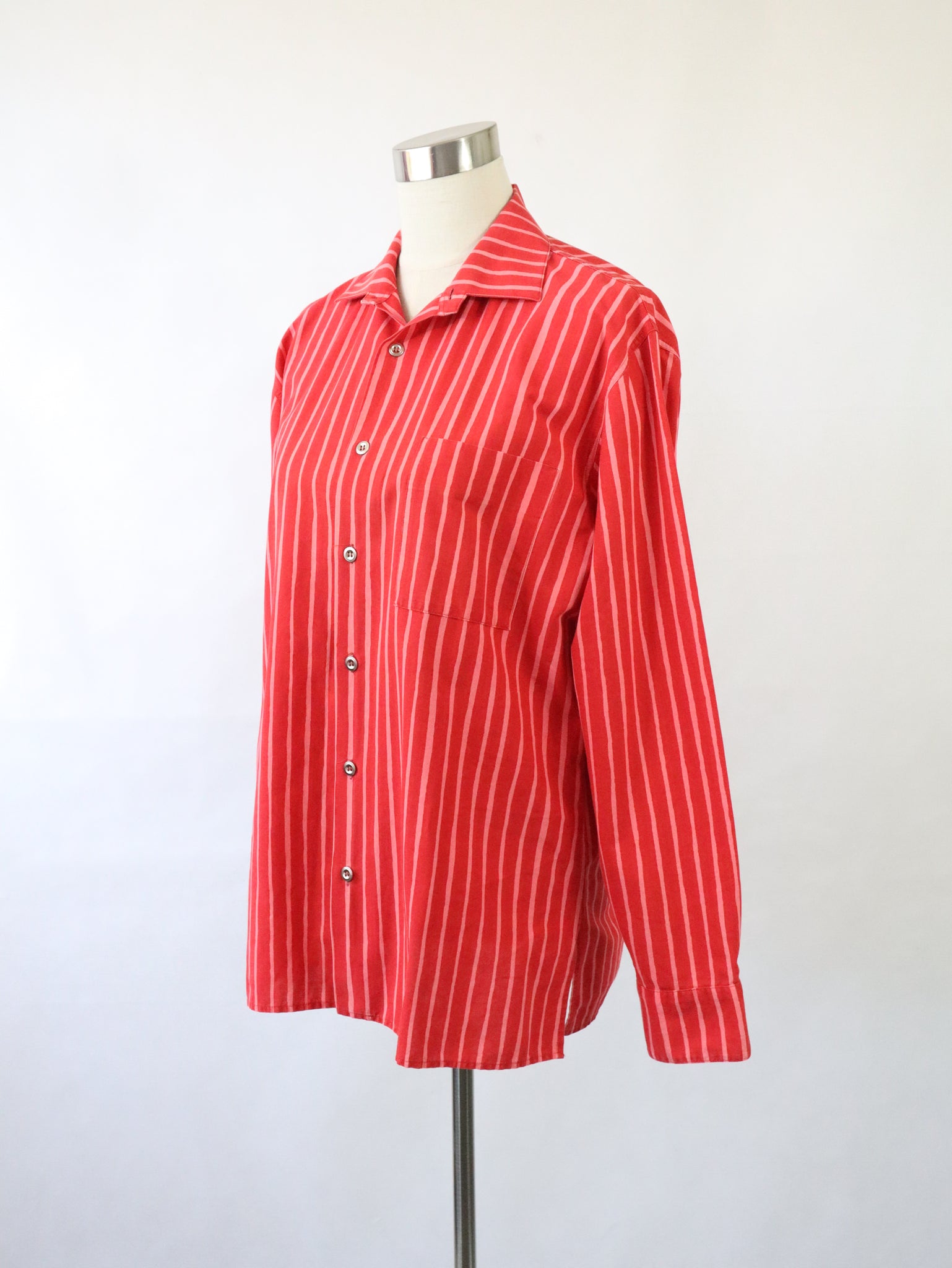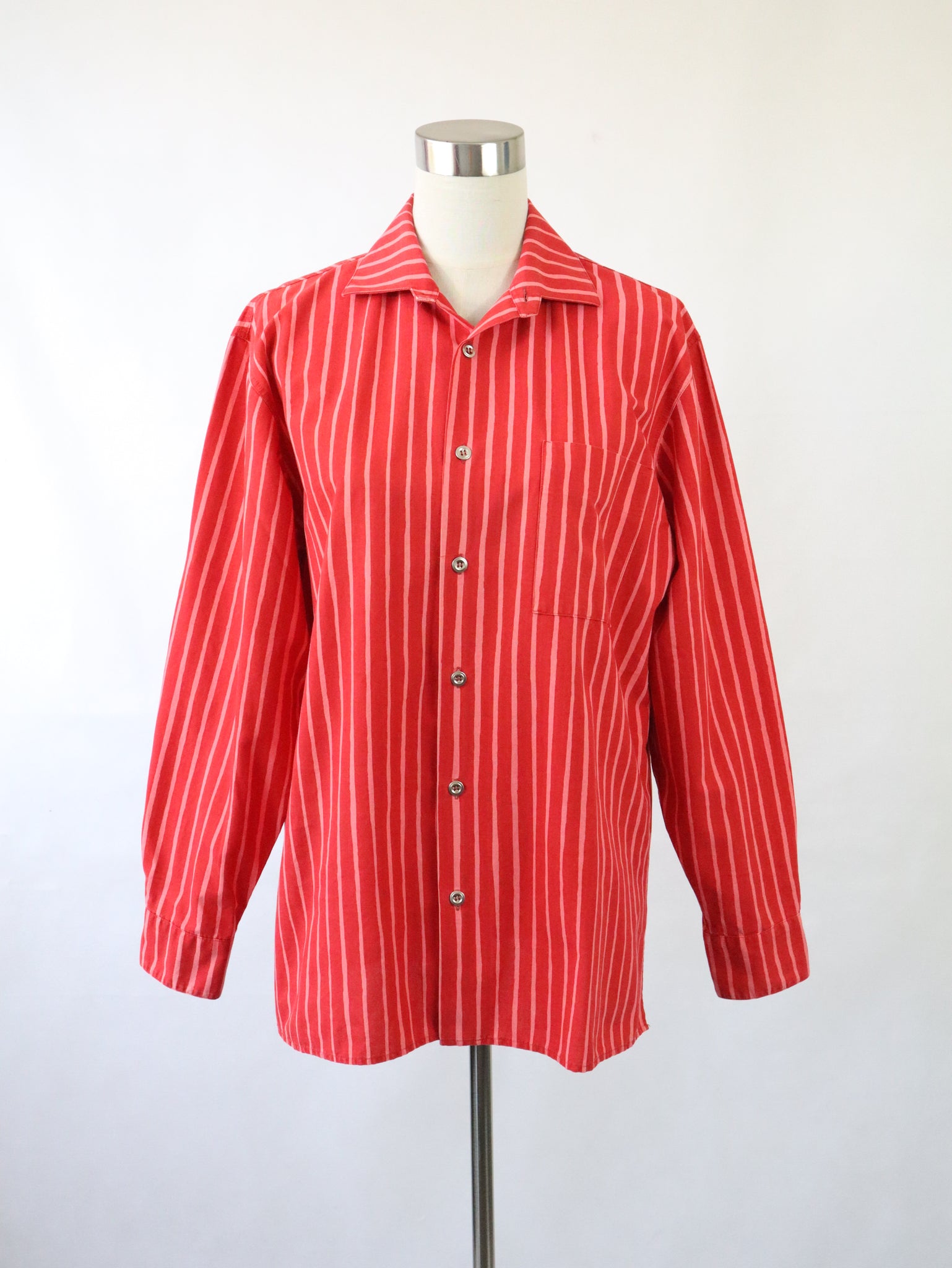Klassinen Piccolo-kuosinen Marimekko Jokapoika-paitapusero, jonka värit ovat punainen ja vaaleanpunainen.