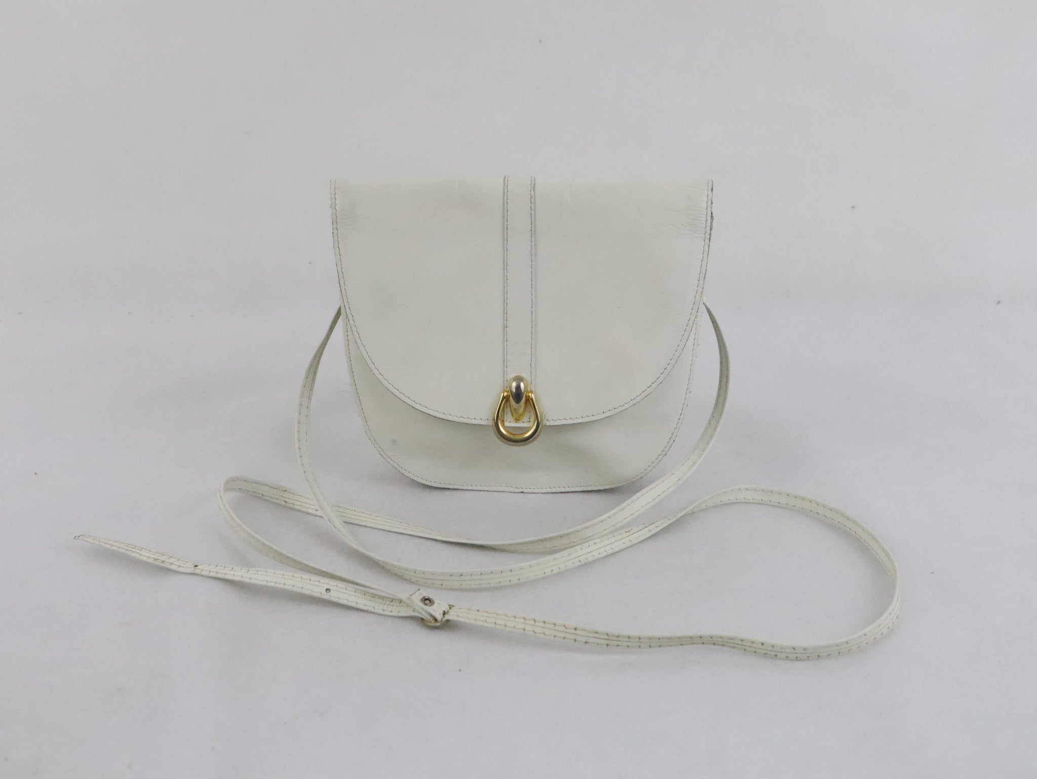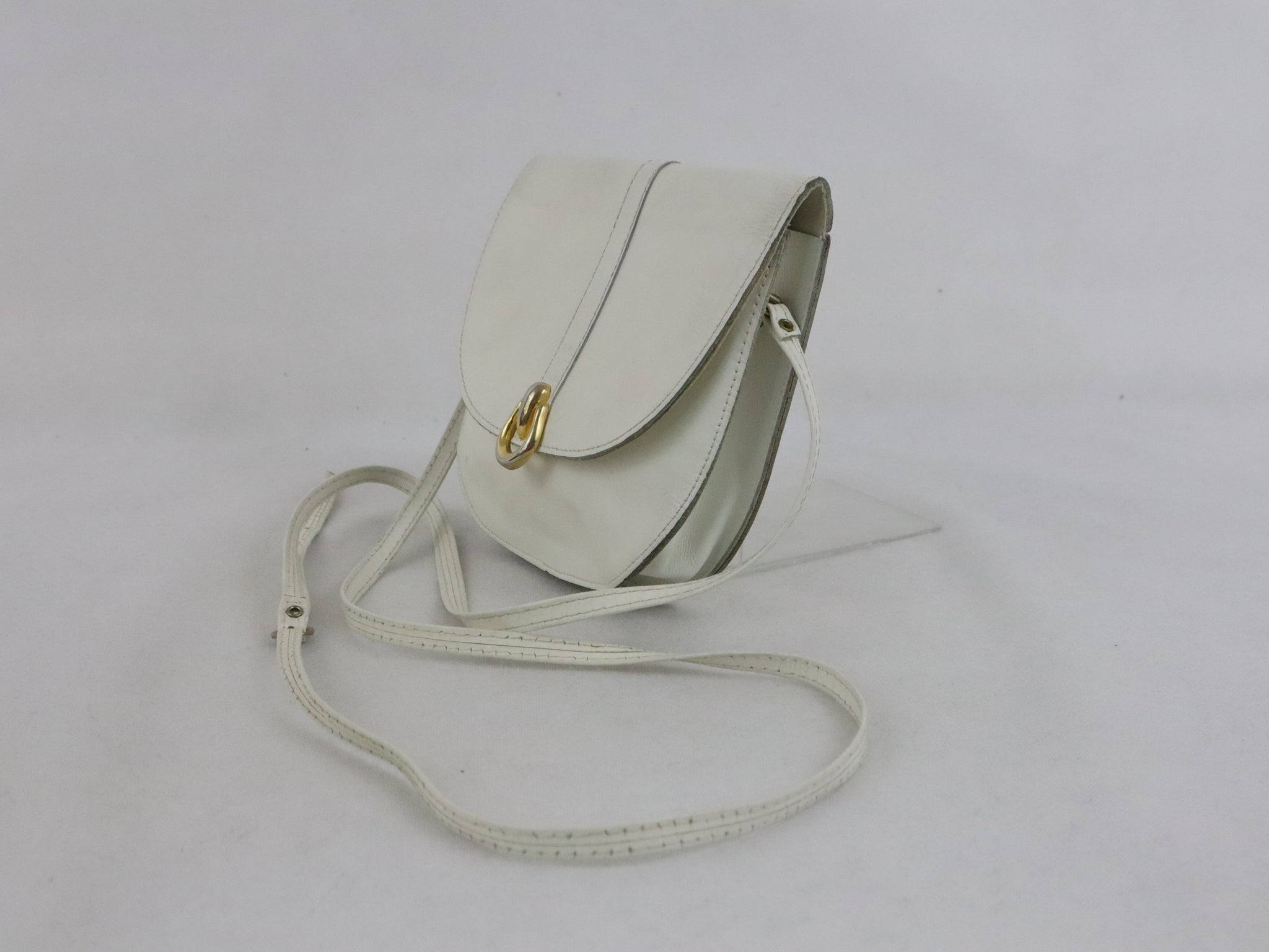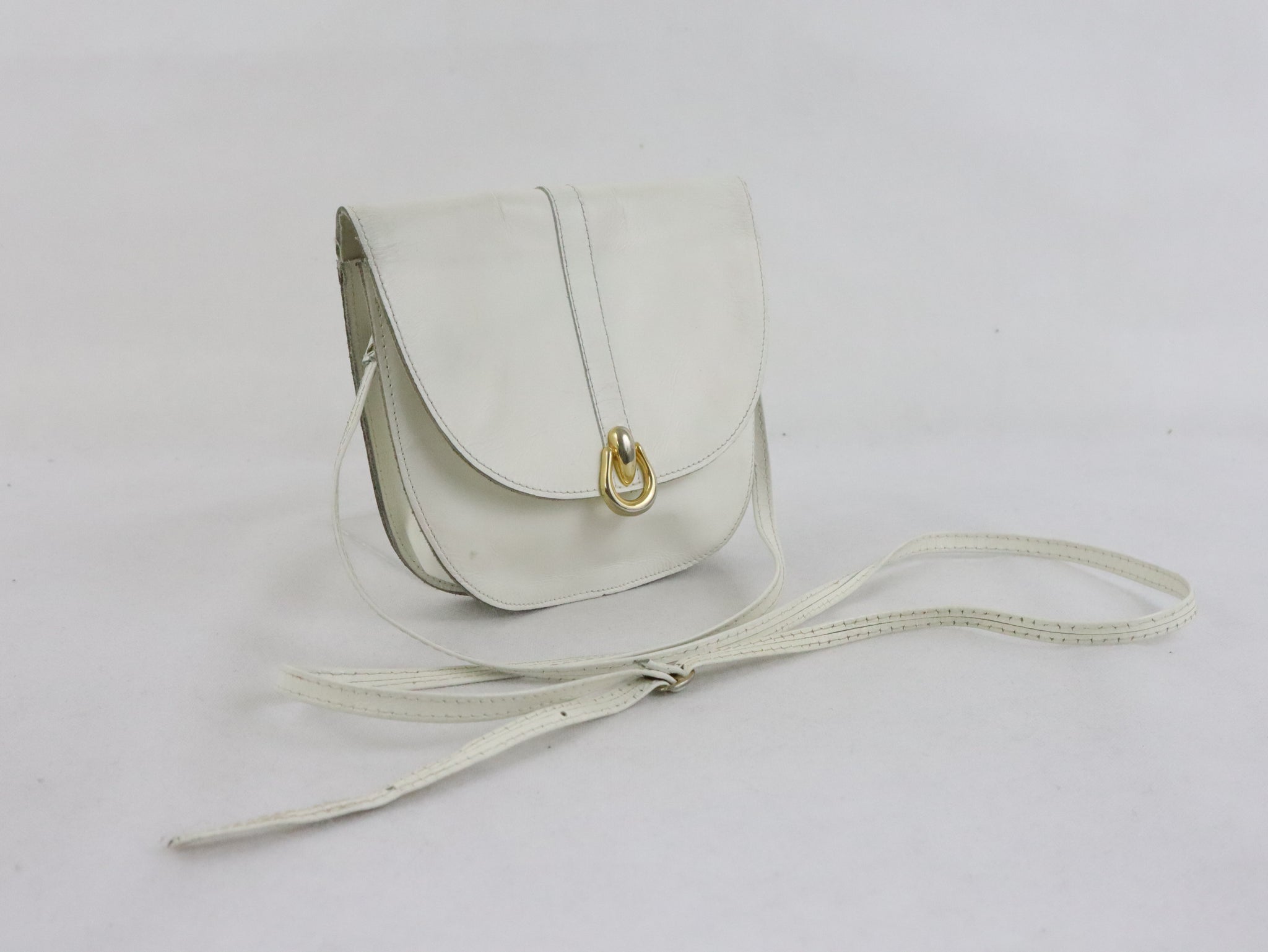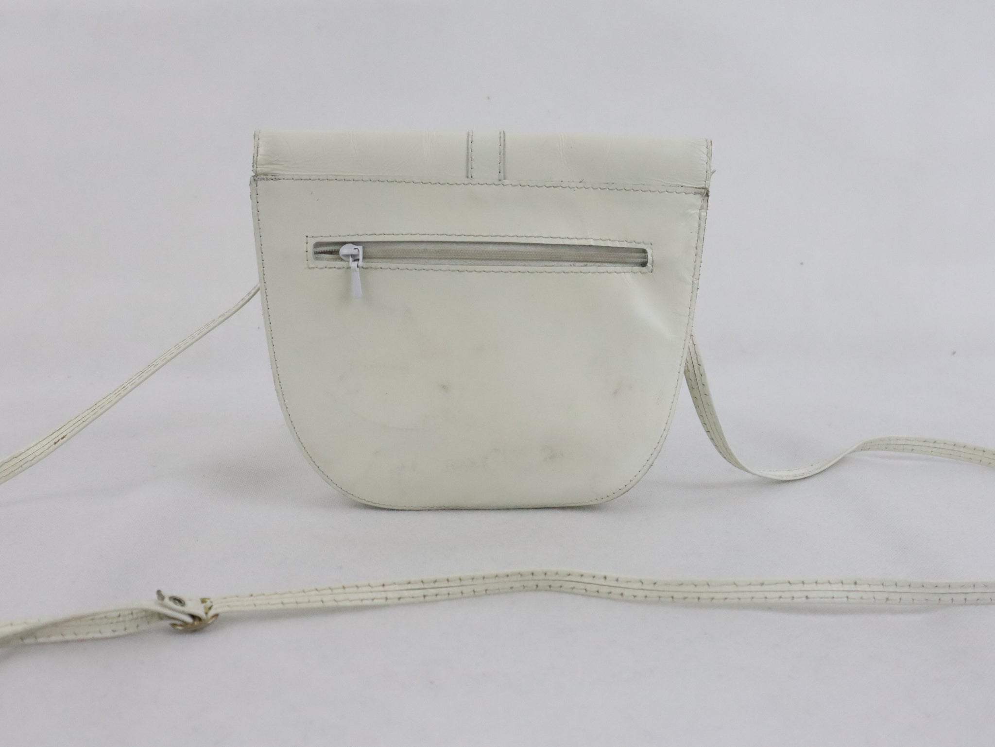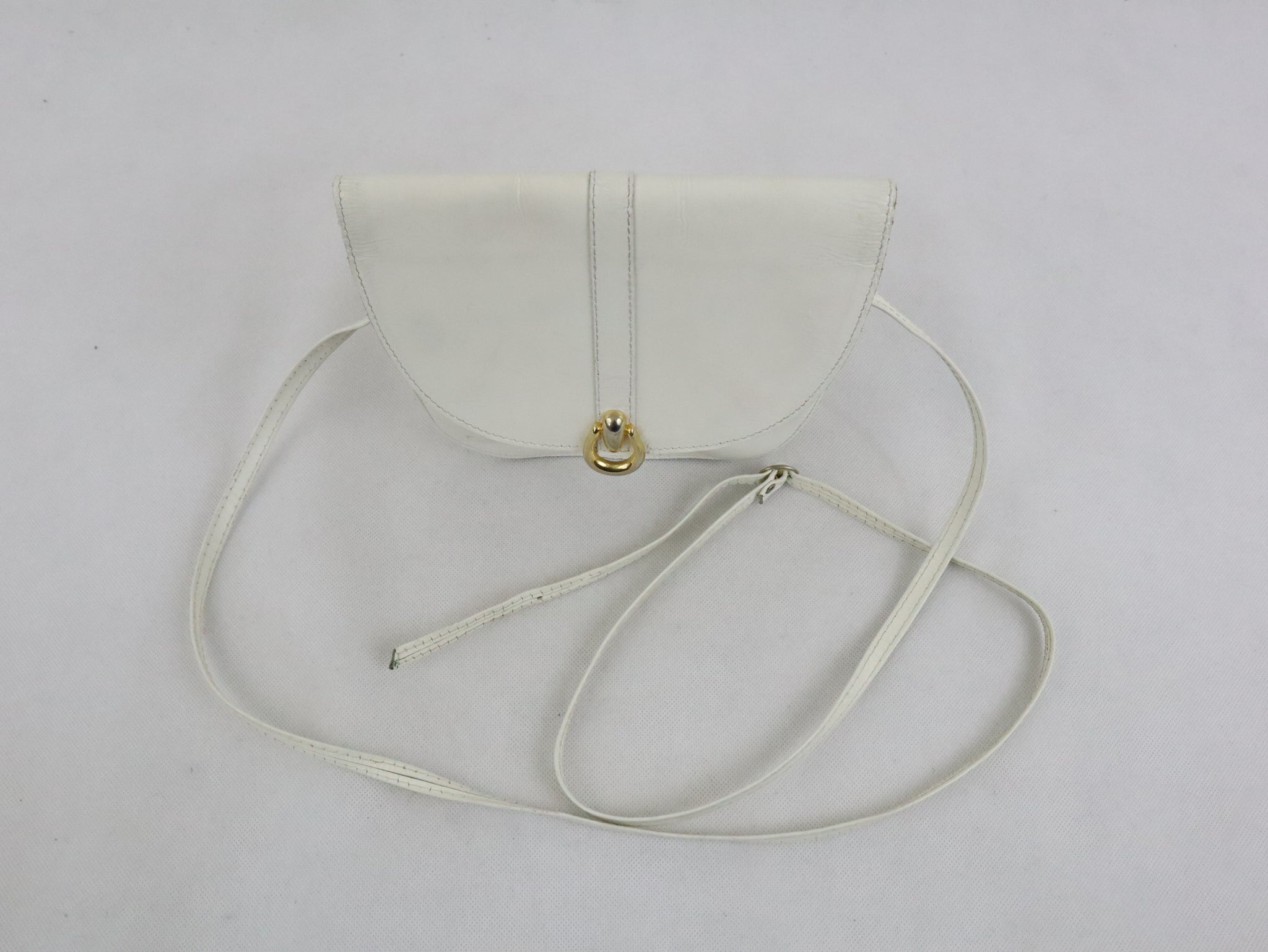 Made in Finland valkoinen nahkainen kotimainen vintage olkalaukku