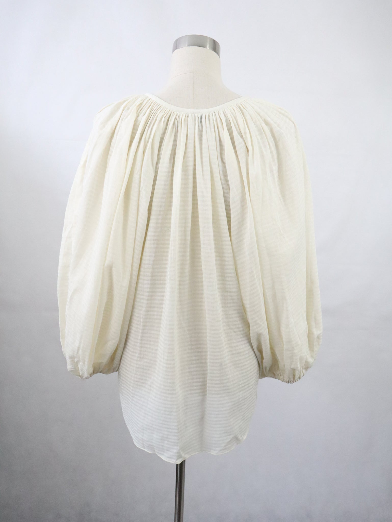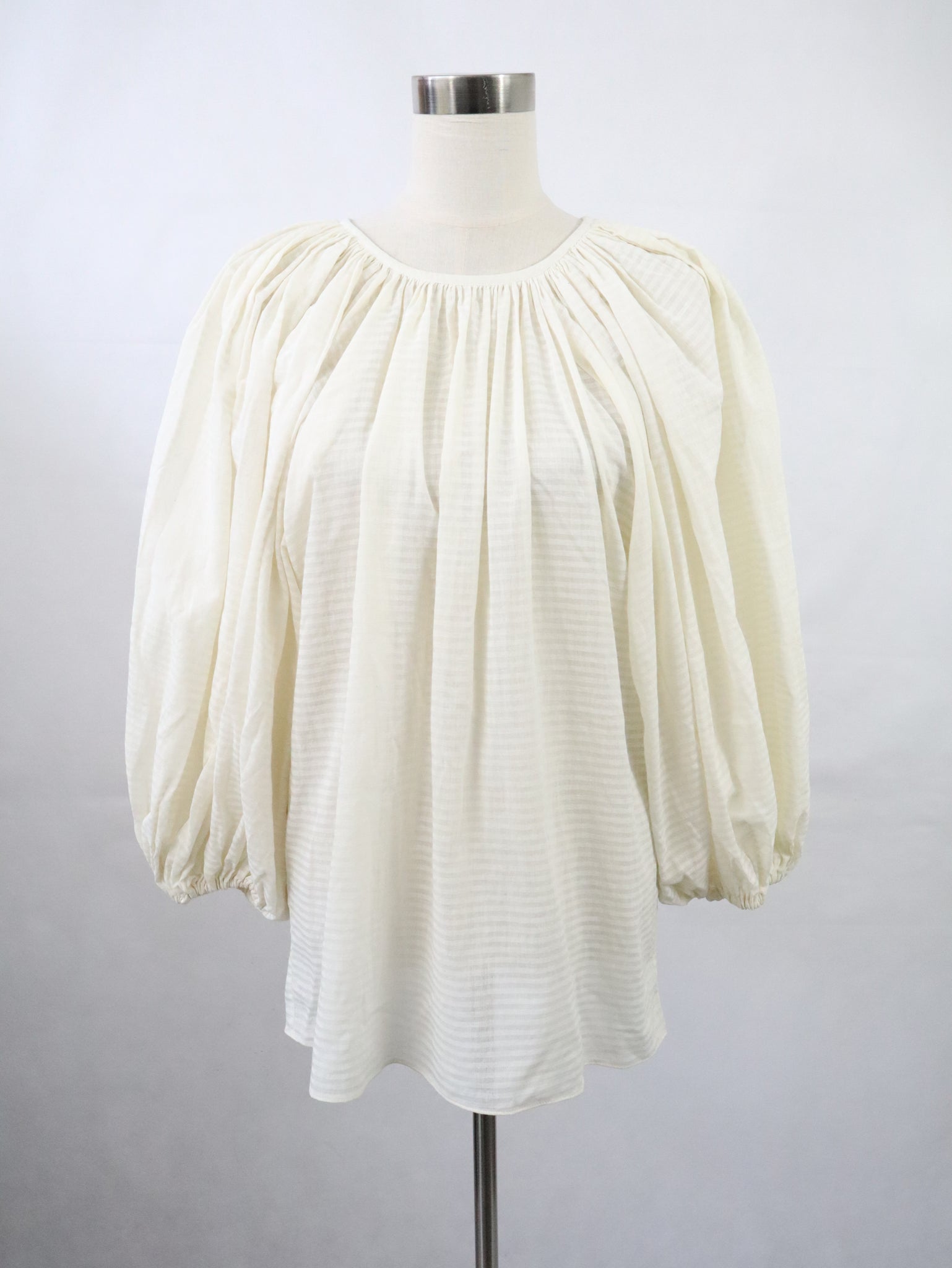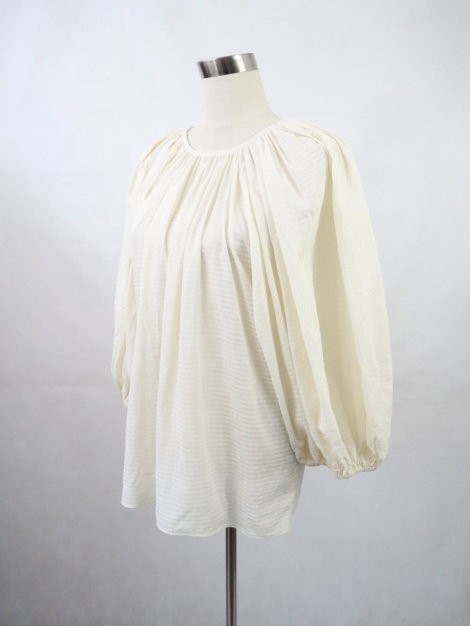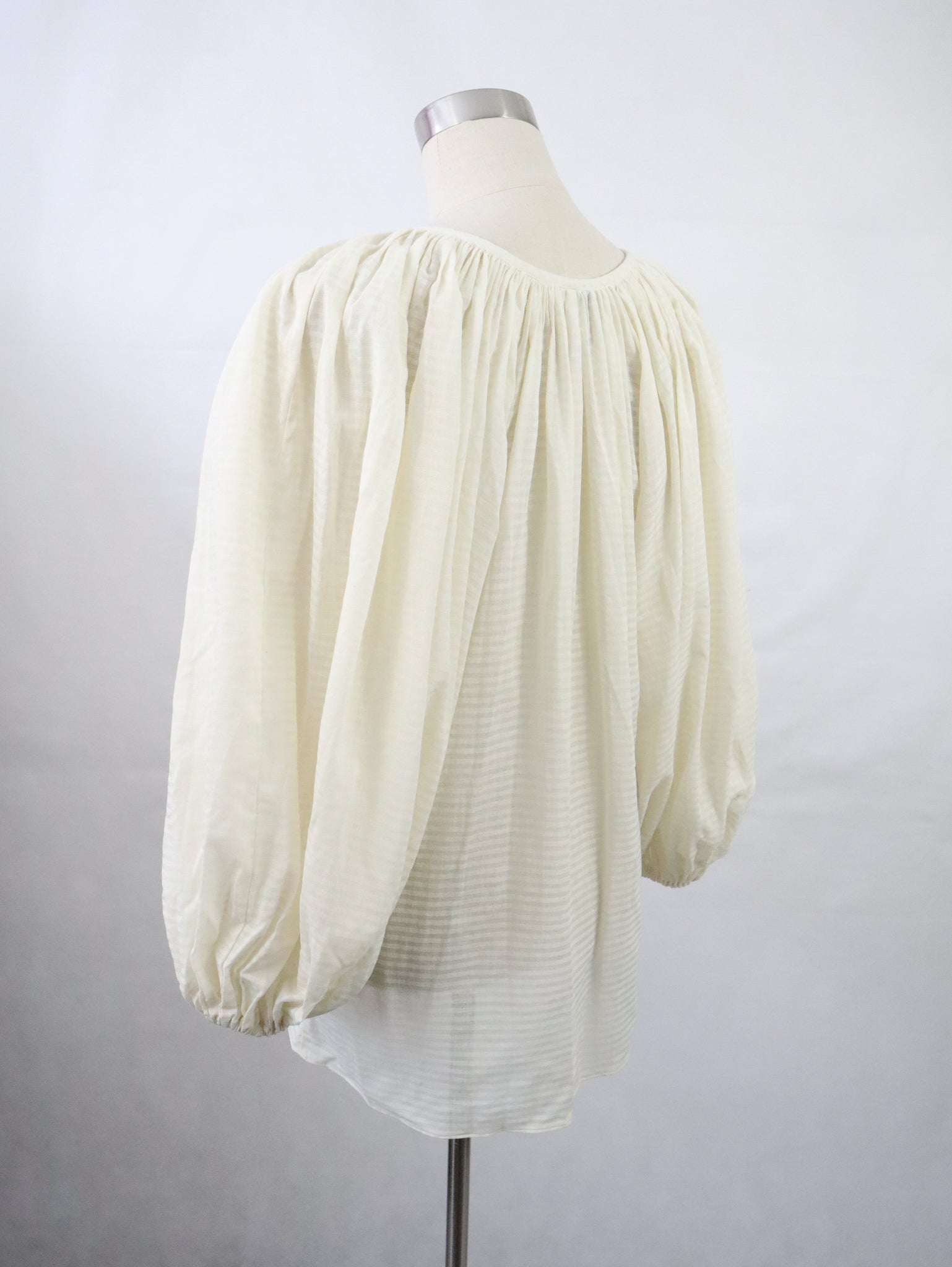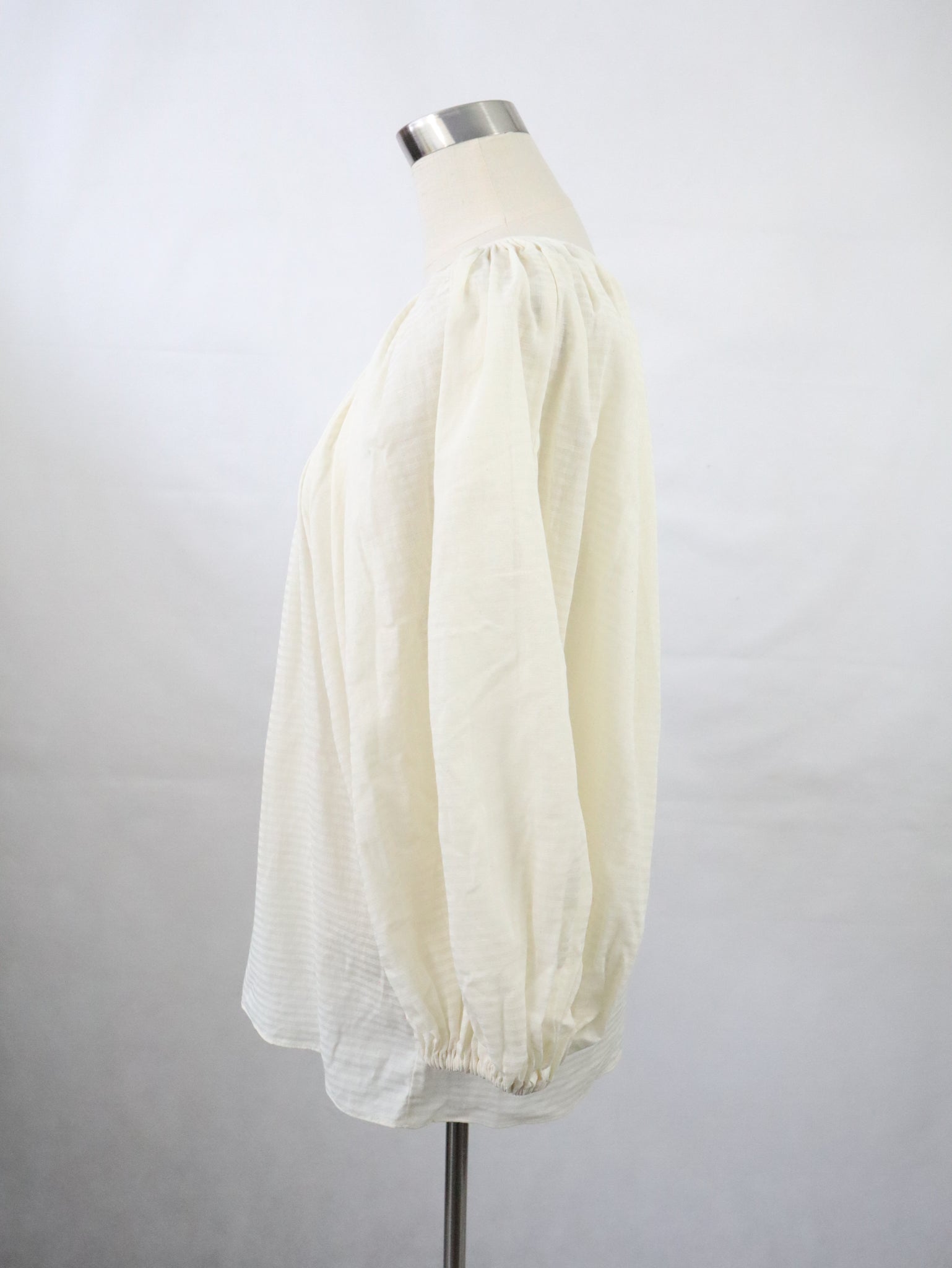 Luonnonvalkoinen puhvihihainen pusero kotimaista vintagea 80-luvulta, valmistaja Vuokko Suomi Finland.