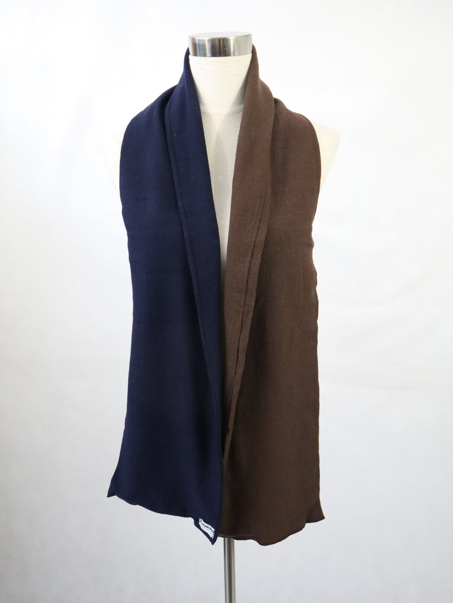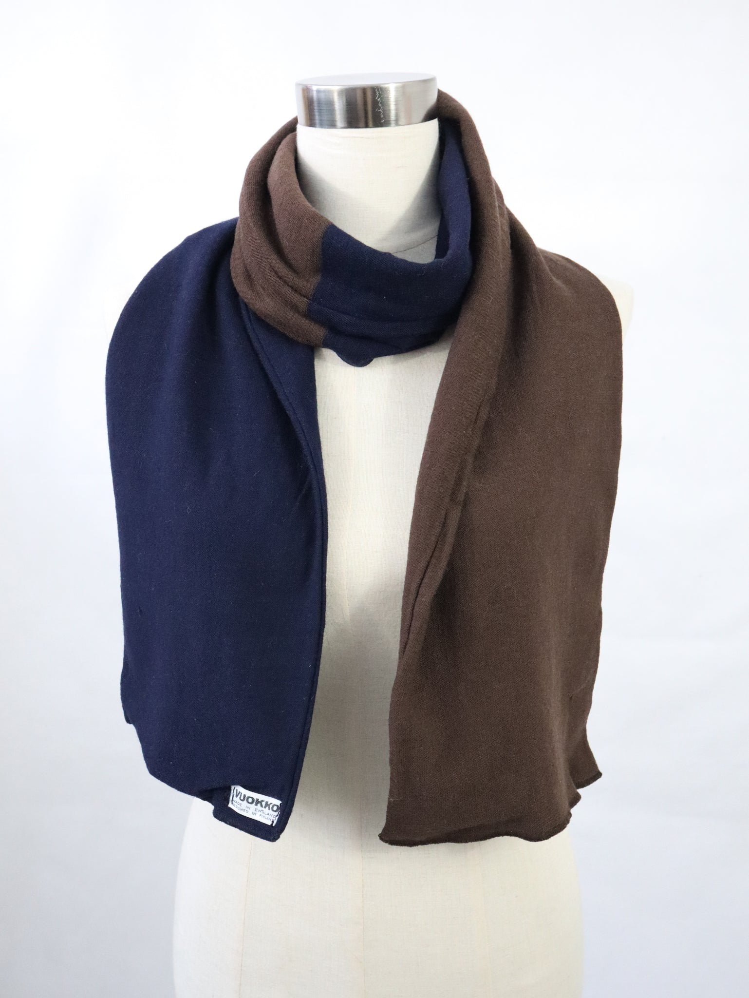 Huivi on ommeltu villaneuloksesta. Huivissa on kahta väriä, toinen puoli on tummansininen ja toinen tummanruskea.
